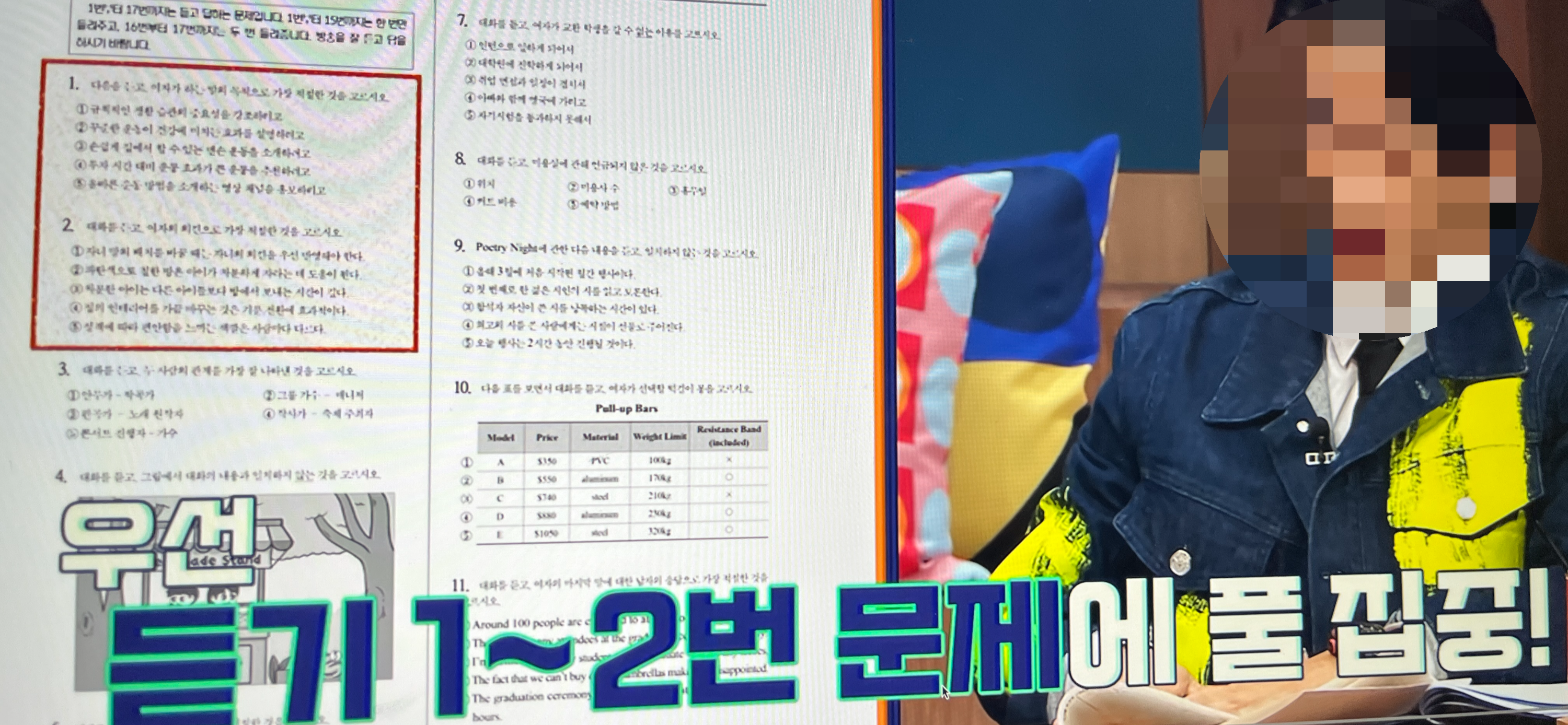 * 듣기문제 1-2번은 집중해서 듣고 그다음 듣기 때부터 문제를 풀어나가세요. 왜 4페이지를 듣기 문제를 푸는 텀이 생길 때 풀어야 하는가? 그 이유는 4페이지 문제들이 연결성이 없는 단독문제이고 비교적 쉽기 때문이라고 합니다! 와 꿀팁