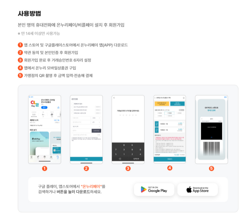 - 구글 플레이스토어나 애플 앱스토어에서 "온누리상품권" 앱을 다운로드합니다.