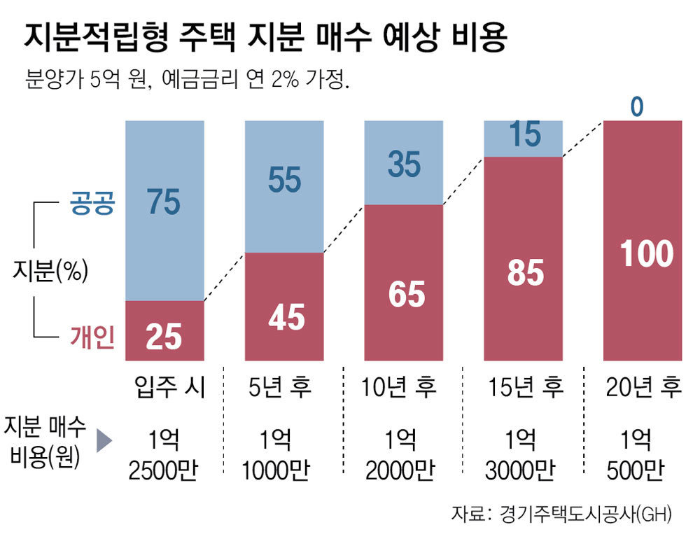 예를 들어, 6억 원짜리 아파트라면 입주 시 1억 원 정도를 내고, 이후 20~30년 동안 나머지 금액을 나눠 내는 구조입니다.