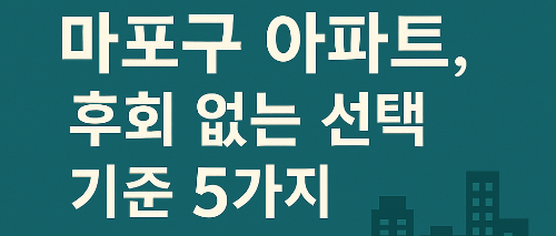 그래서 오늘은 마포구 아파트 선택 기준 5가지, 이거 알면 확실히 줄어듭니다!