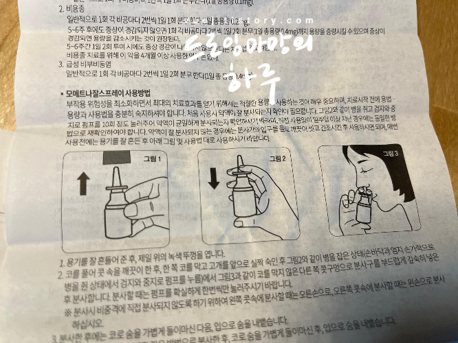 - 코 출혈, 자극감 등의 부작용이 있을 수 있으므로 사용 후 이상 반응에 유의합니다.