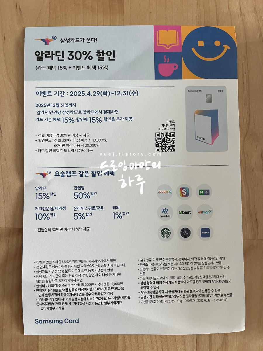 참고: 혜택 및 이벤트는 예고 없이 변경될 수 있으니, 신청 전 삼성카드 및 알라딘 공식 웹사이트에서 최신 정보를 확인하세요.