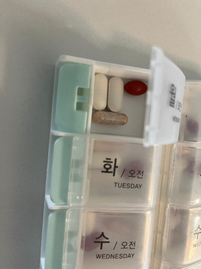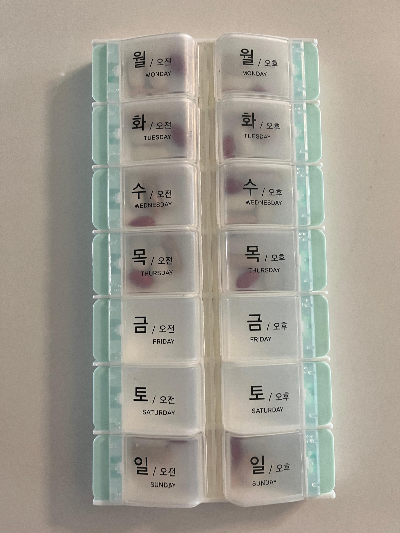 - 데일리 약통에 일주일 치를 미리 넣어두면 꾸준히 챙겨 먹기 편합니다.