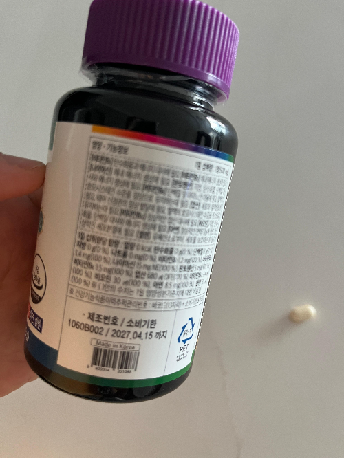 패키지는 심플한 흰색 병에 라벨이 붙어 있는 디자인이에요. 뚜껑은 돌려서 여는 타입인데, 조금 뻑뻑해서 아이가 혼자 열긴 어려울 수도 있겠더라고요. 알약은 중간 크기로, 성인 기준으론 무난하지만 아이에겐 약간 클 수 있어요. 우리 아이(13살)는 물과 함께 삼키는 데 큰 문제는 없었어요. 하루 1정, 식사 후에 먹이면 된다고 해서 저녁 식사 후에 먹이고 있어요.