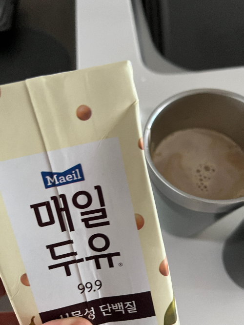 - 핫 라떼: 잔에 에스프레소를 먼저 붓고, 데운 매일두유 99.9를 천천히 부어줍니다. 거품이 있다면 위에 살짝 얹어 마무리.