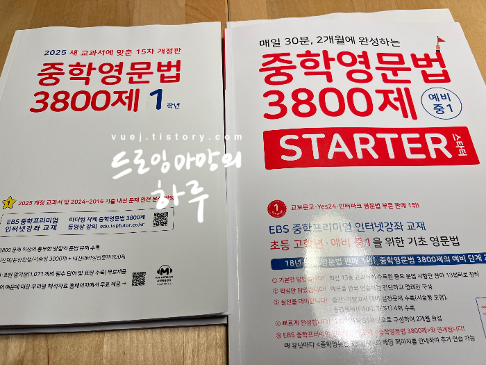 <중학영문법 3800제 스타터>와 <중학영문법 3800제 1학년> 두 권을 사서 응용하며 사용해도 좋아요