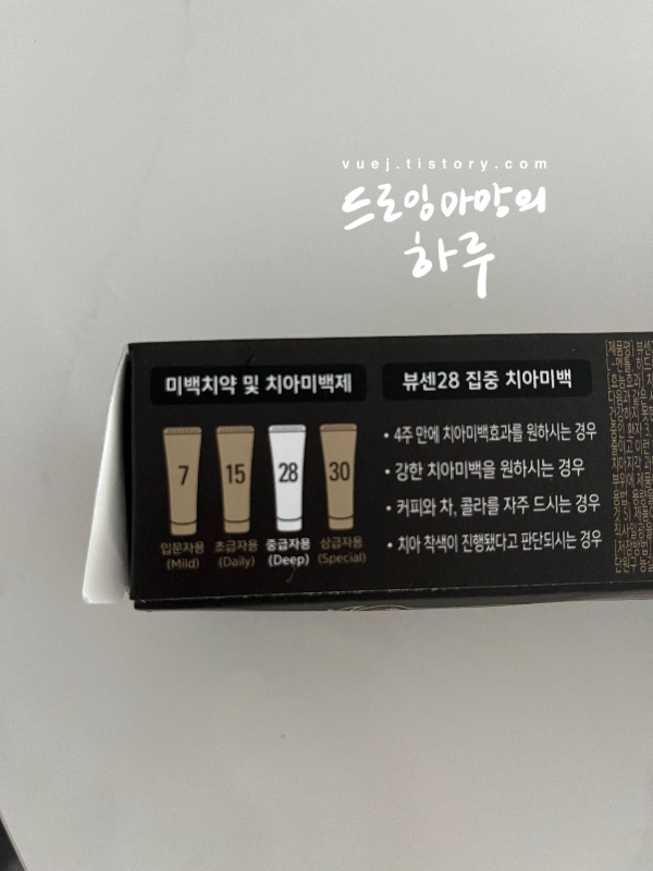 - 민감성 주의: 뷰센 28은 과산화수소 함량이 높아 잇몸이 예민한 분들에게는 자극적일 수 있어요. 저도 처음엔 잇몸이 살짝 따끔거려서 사용 횟수를 줄였어요.