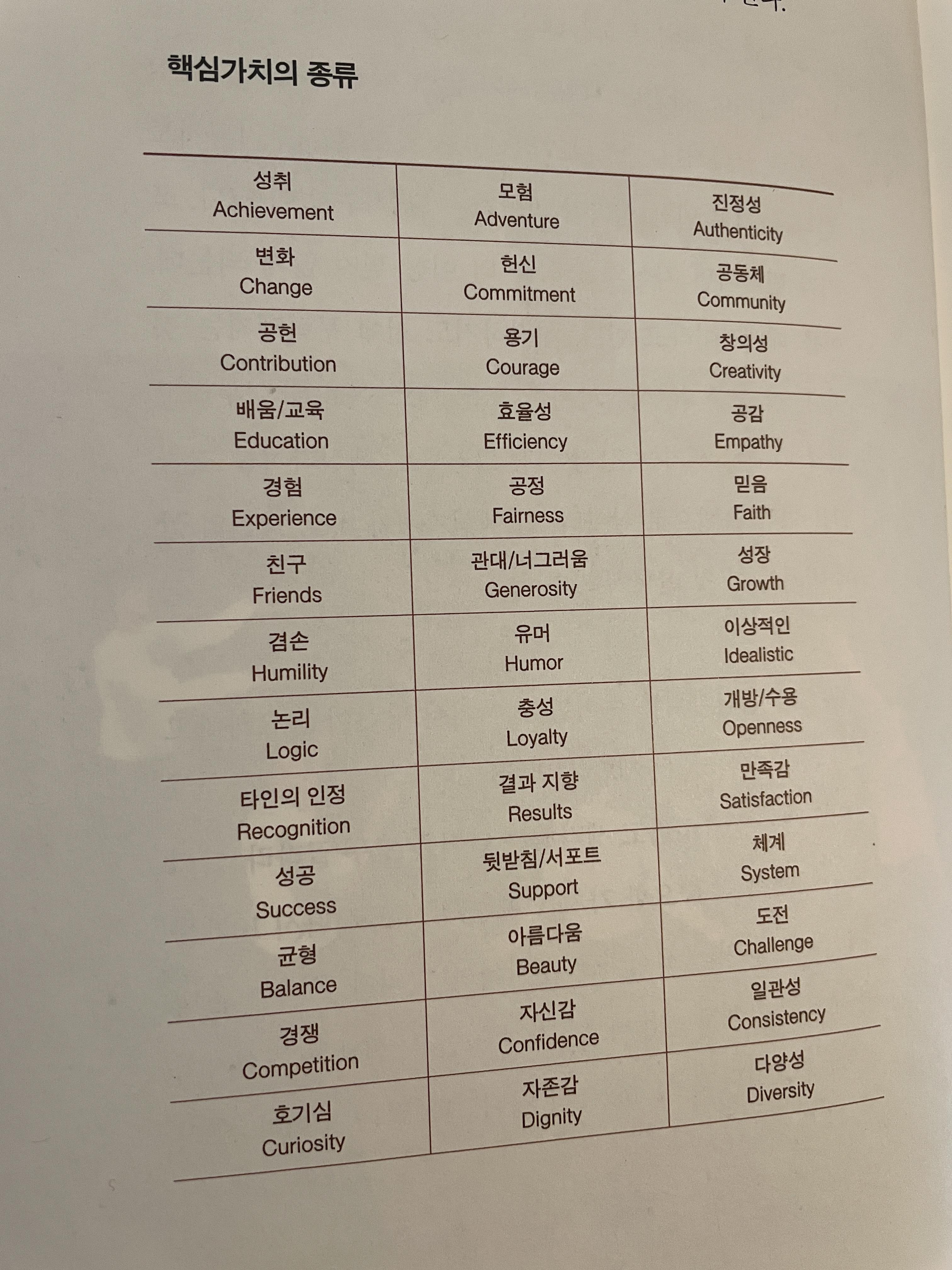 내가 정한 핵심가치 5가지