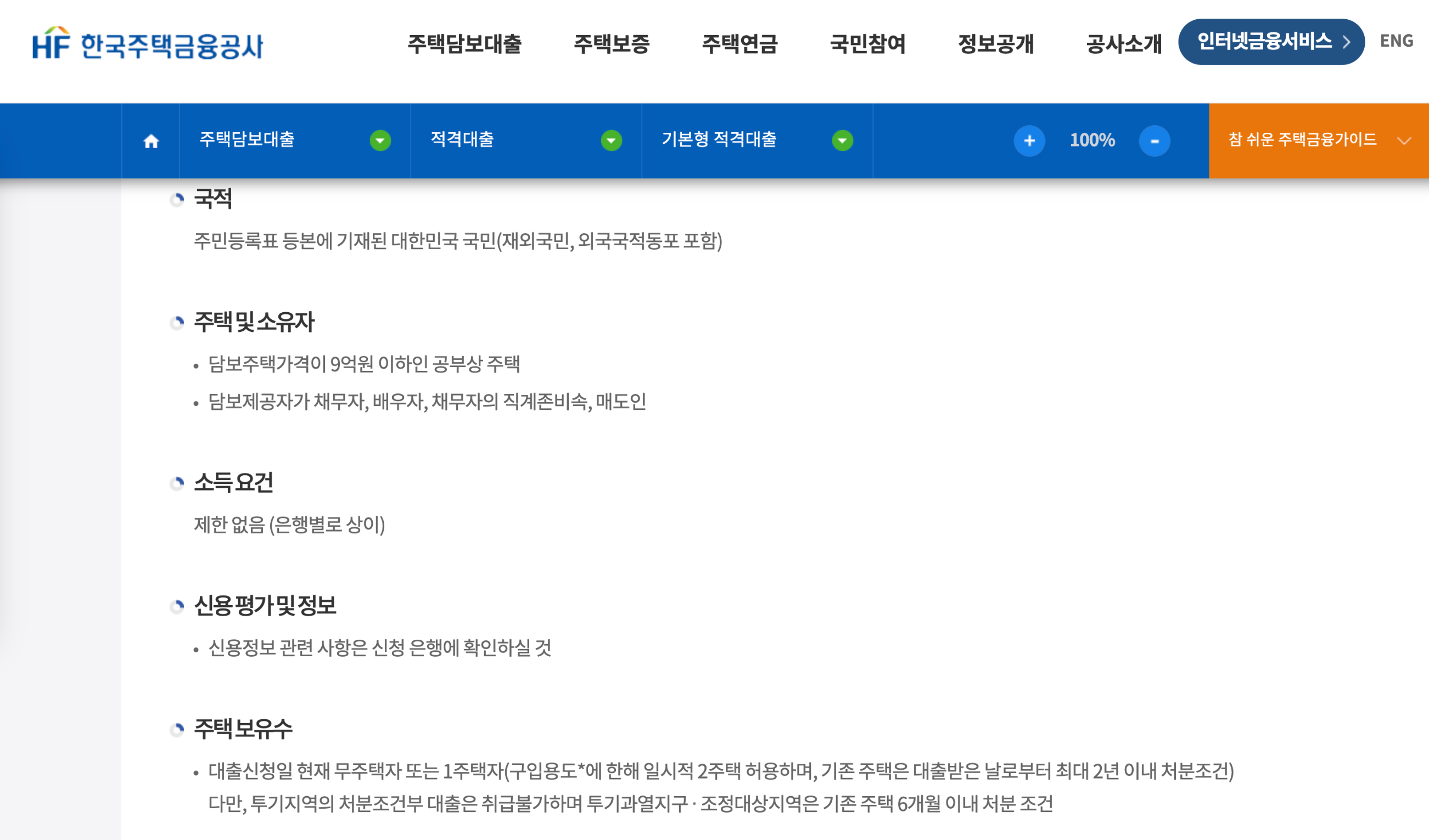 특례 보금자리론은 적격대출의 조건과 동일할 거라 생각되어 적격 대출의 조건을 찾아봤어요