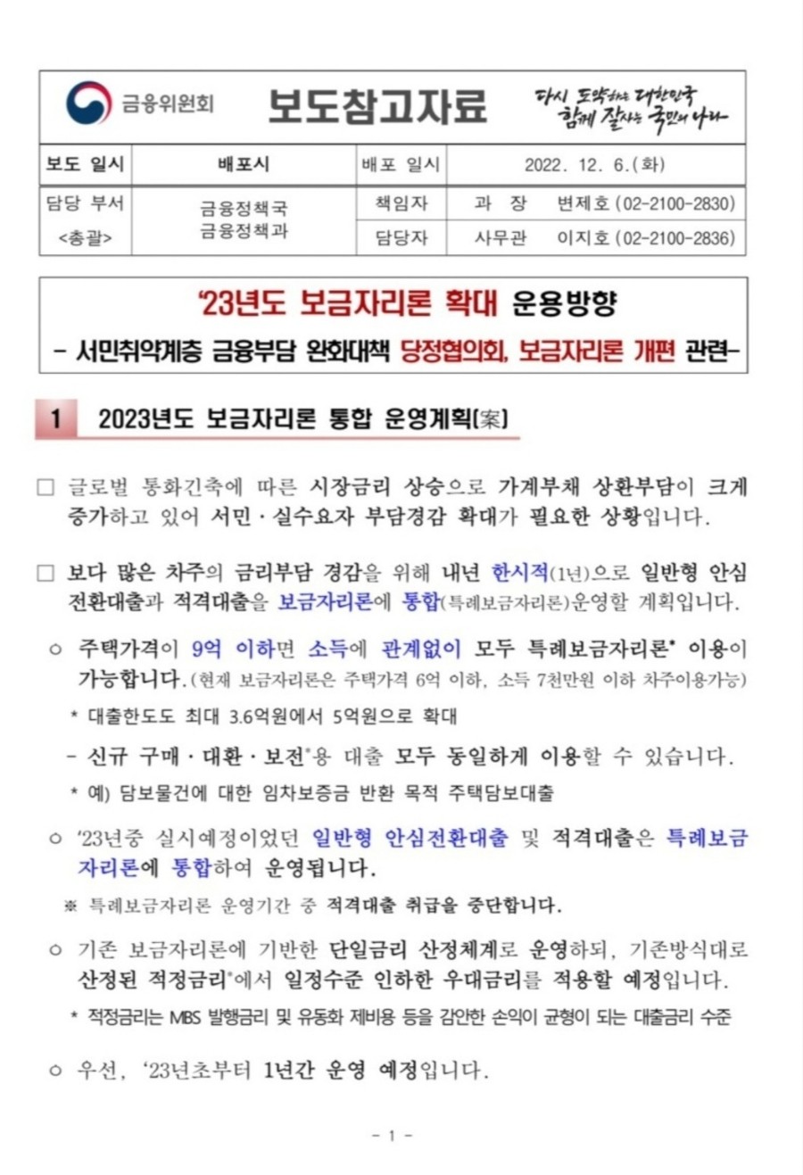 " 23년 중 실시 예정이었던 일반형 안심전환대출 및 적격대출은 특례 보금자리론에 통합하여 운영됩니다."