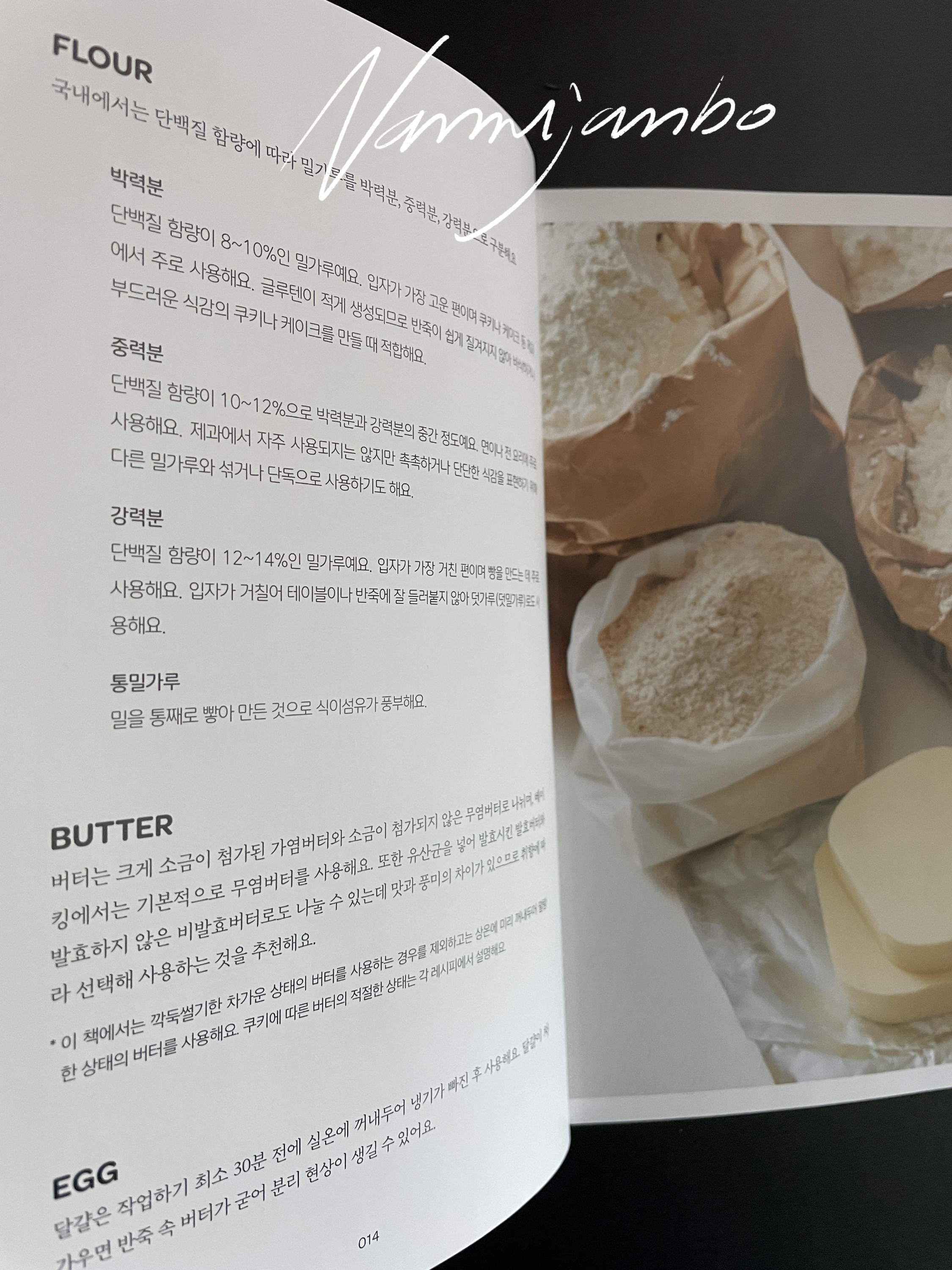 책 도입부에 밀가루 종류, 달걀, 바닐라 등 쿠카를 만드는 데 필요한 기본적인 재료들의 종류와 설명이 자세히 나와있어서