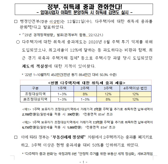| 3주택 합산 공시가 12억원 미만 일반세율 과세 (0) | 2022.12.13 |