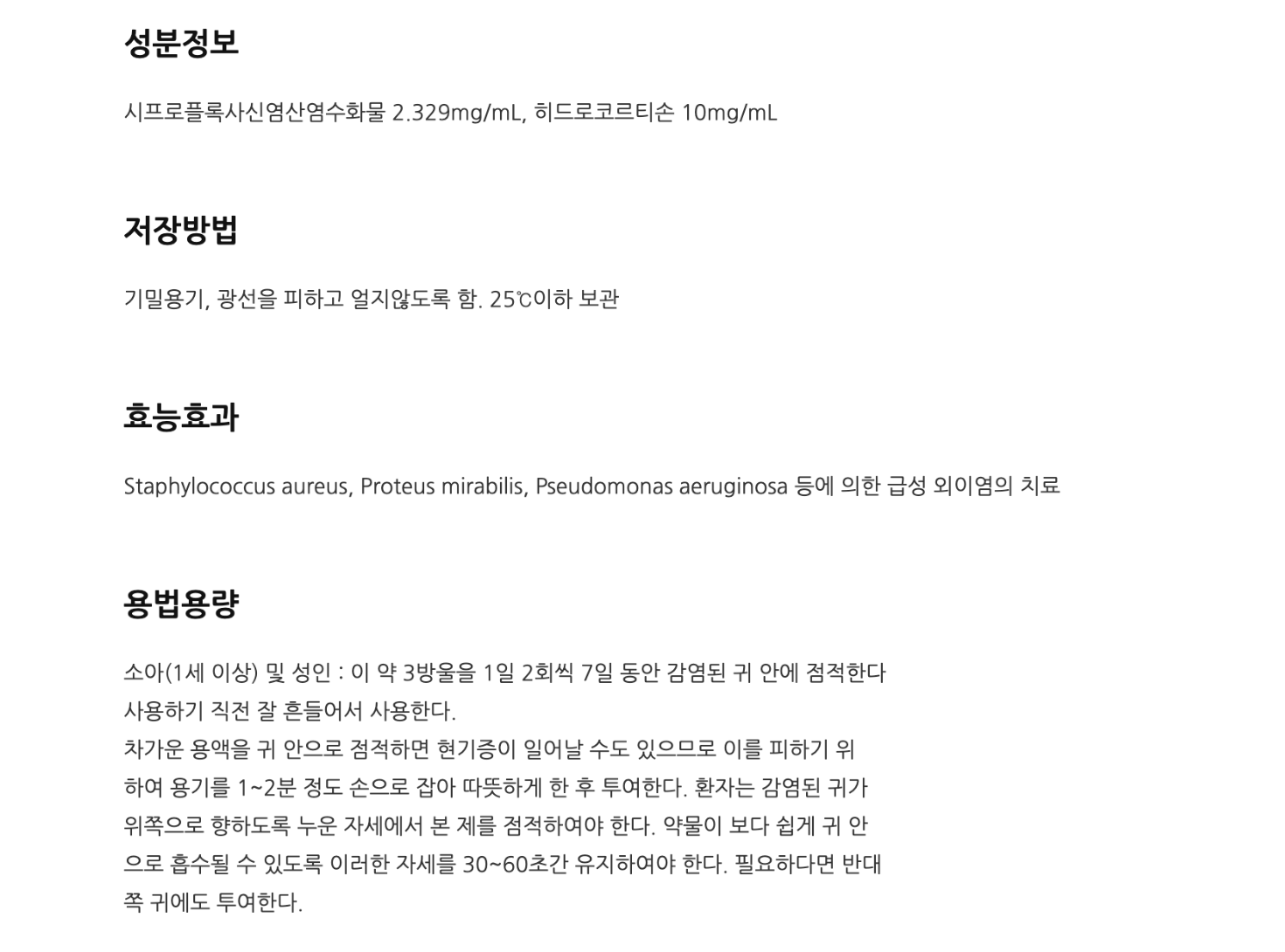 다만 사용 시 귀가 많이 따갑거나 아프면 다시 진료를 받아 다른 성분으로 바꿔서 투약하는 것이 좋고