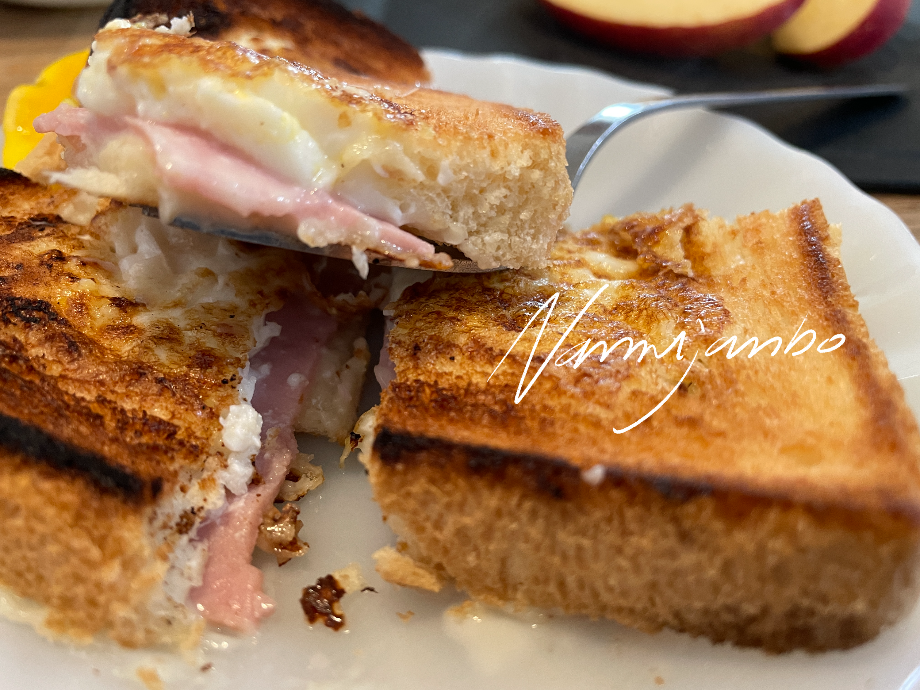 6. 1-2분 뒤에 아까 네모로 잘라놓았던 식빵을 얹는다 (막 올려도 맛있으니 걱정하지 말고 얹으세요:)