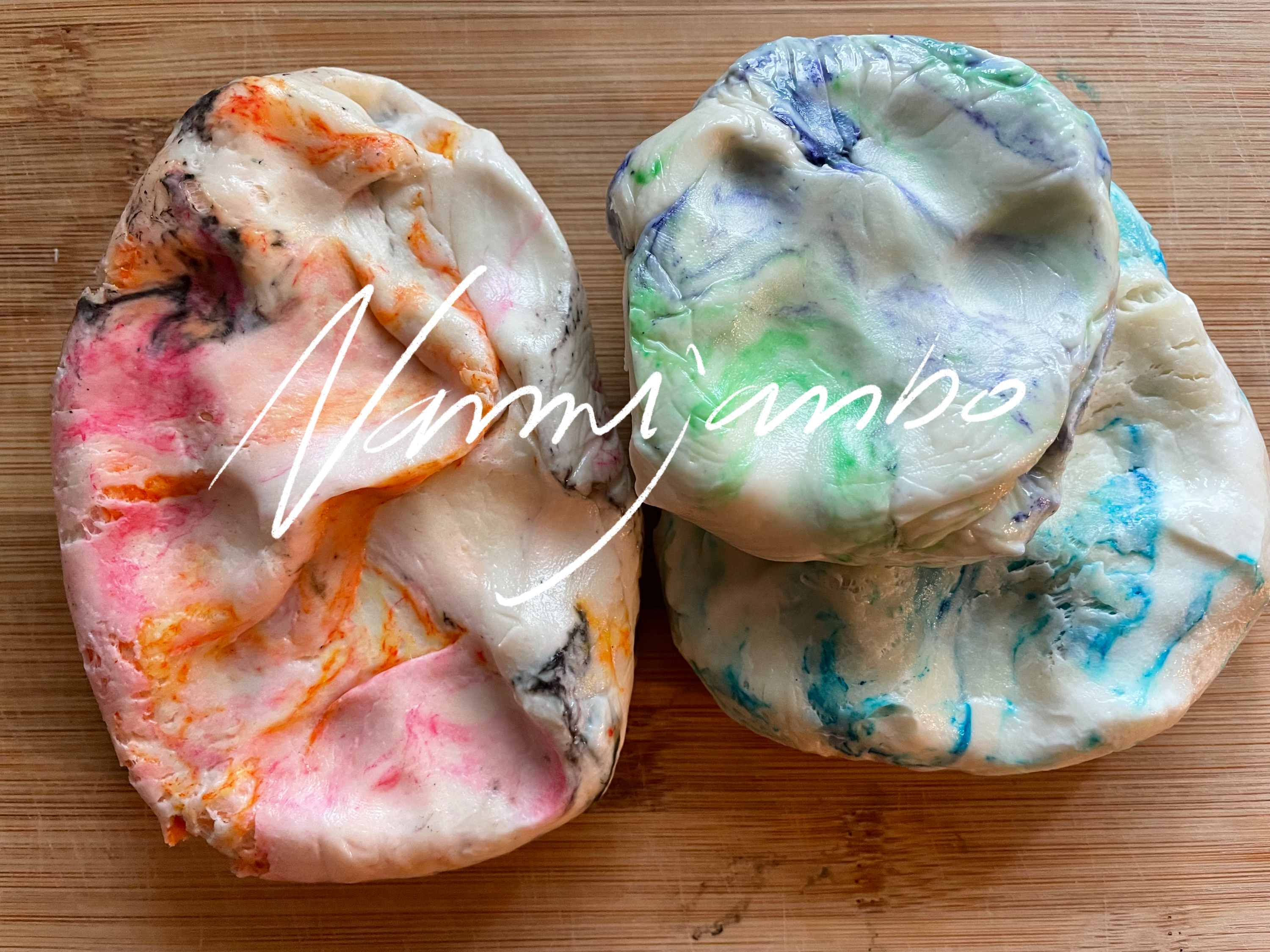 색소 넣고 많이 치대면 색이 다 골고루 입혀져서 더 알록달옥 해져요