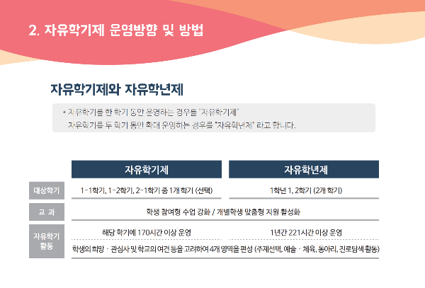 (경기도는 2023년 학교별로 '자유학기제' 또는 '자유학년제' 둘 중에 자율선택한다고 하네요)