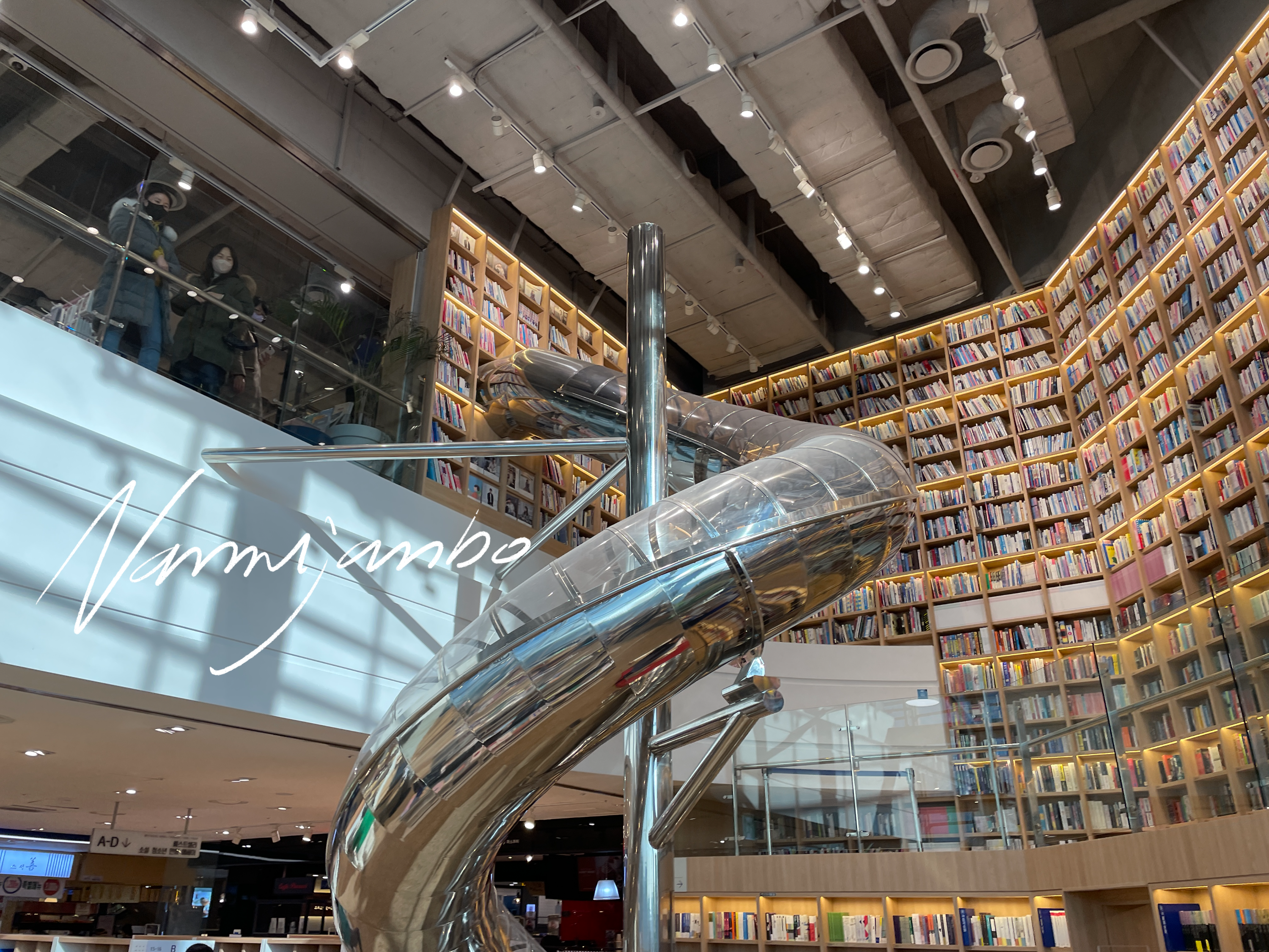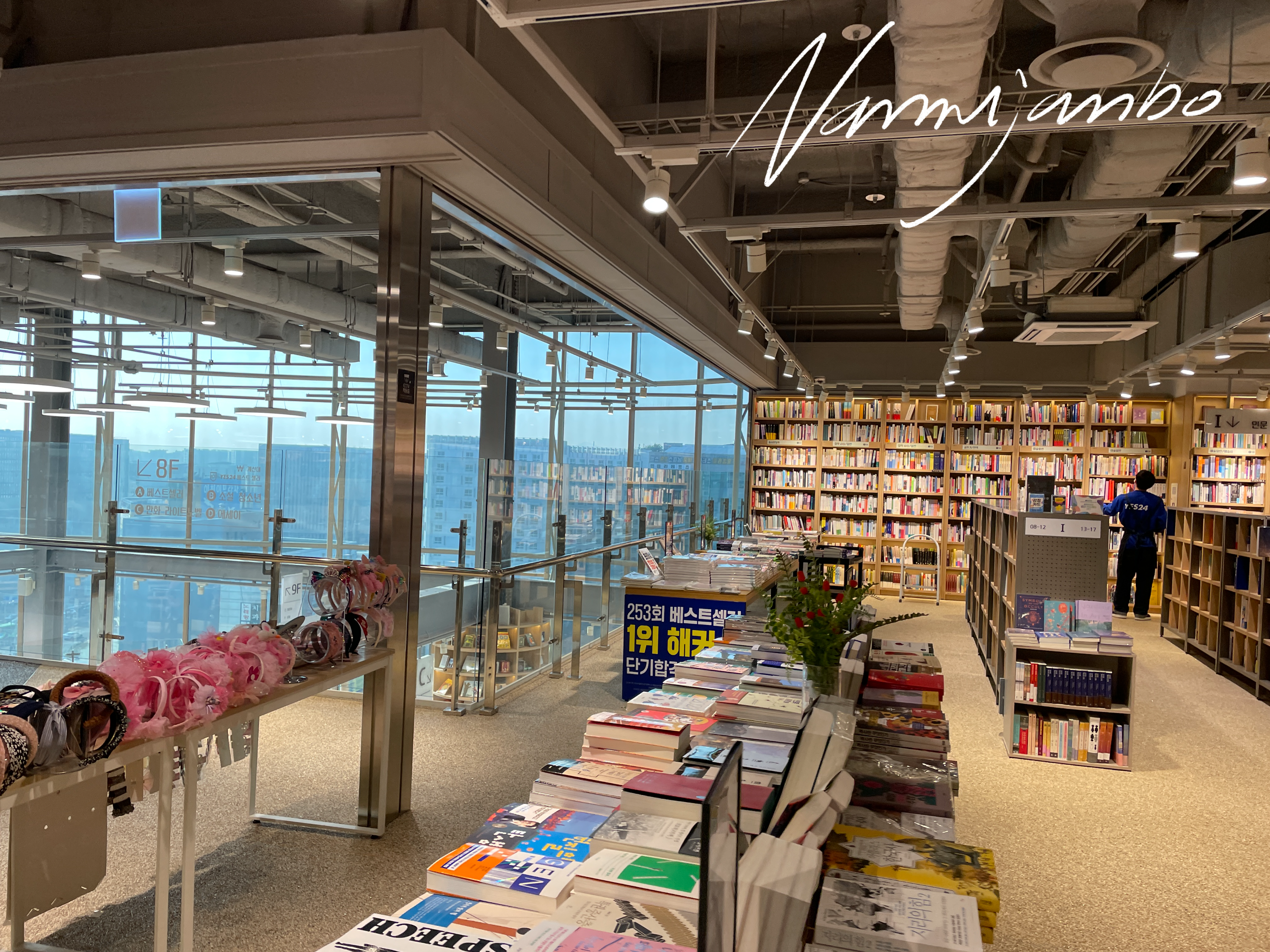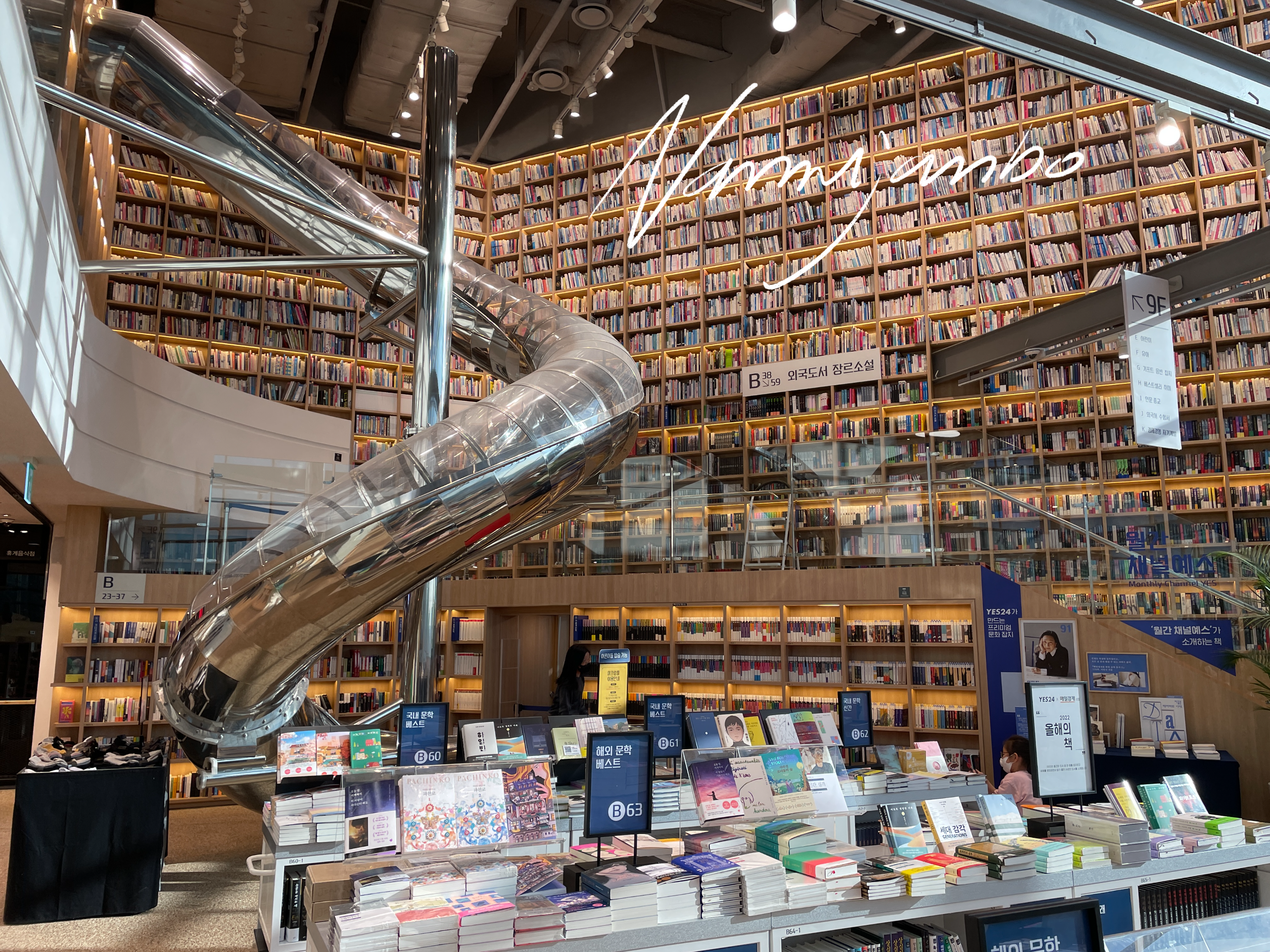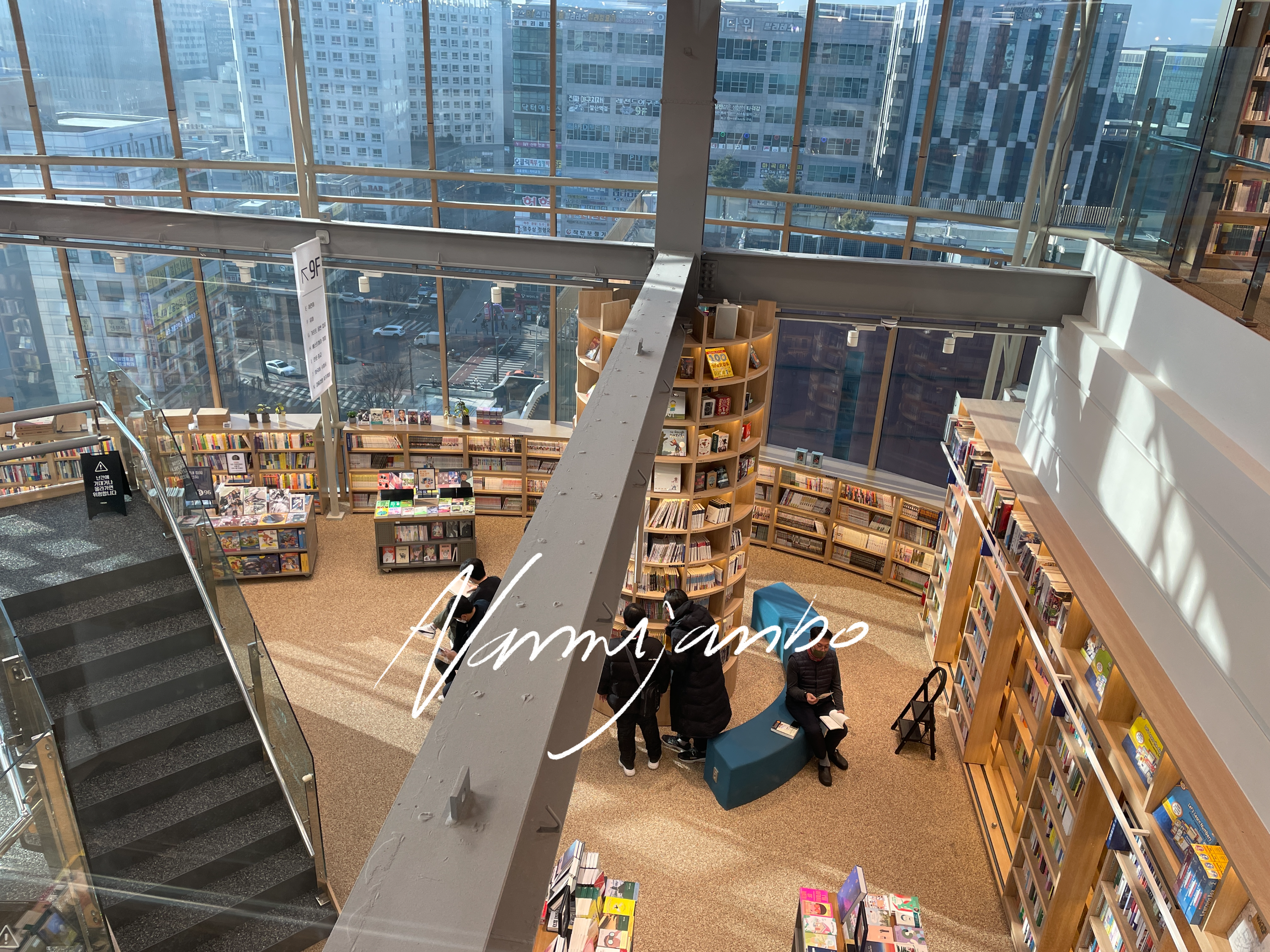 층고가 넓어서 탁 트인 시원한 느낌을 주는 서점이에요