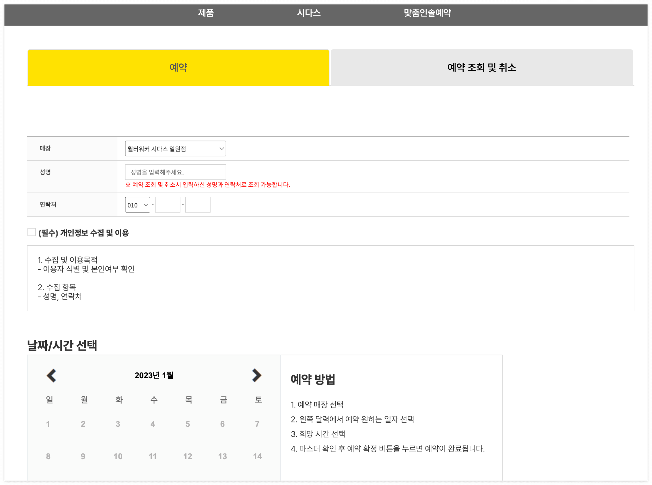아래 홈페이지에서 예약제로 되어있어서 매장 선택, 시간 선택 하고 방문하시면 돼요