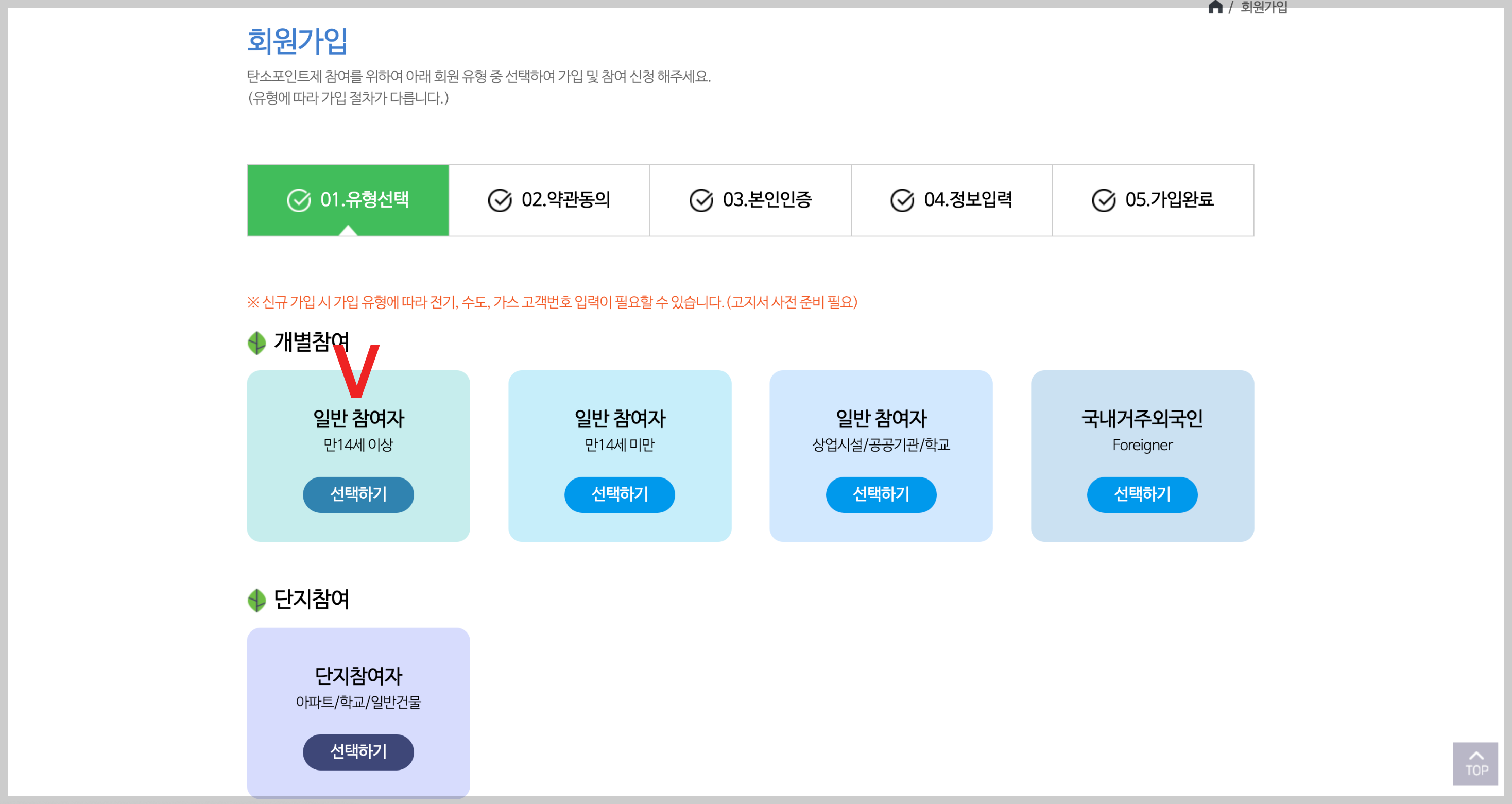 1. 유형선택 / 만 14세 이상 일반 참여자 선택