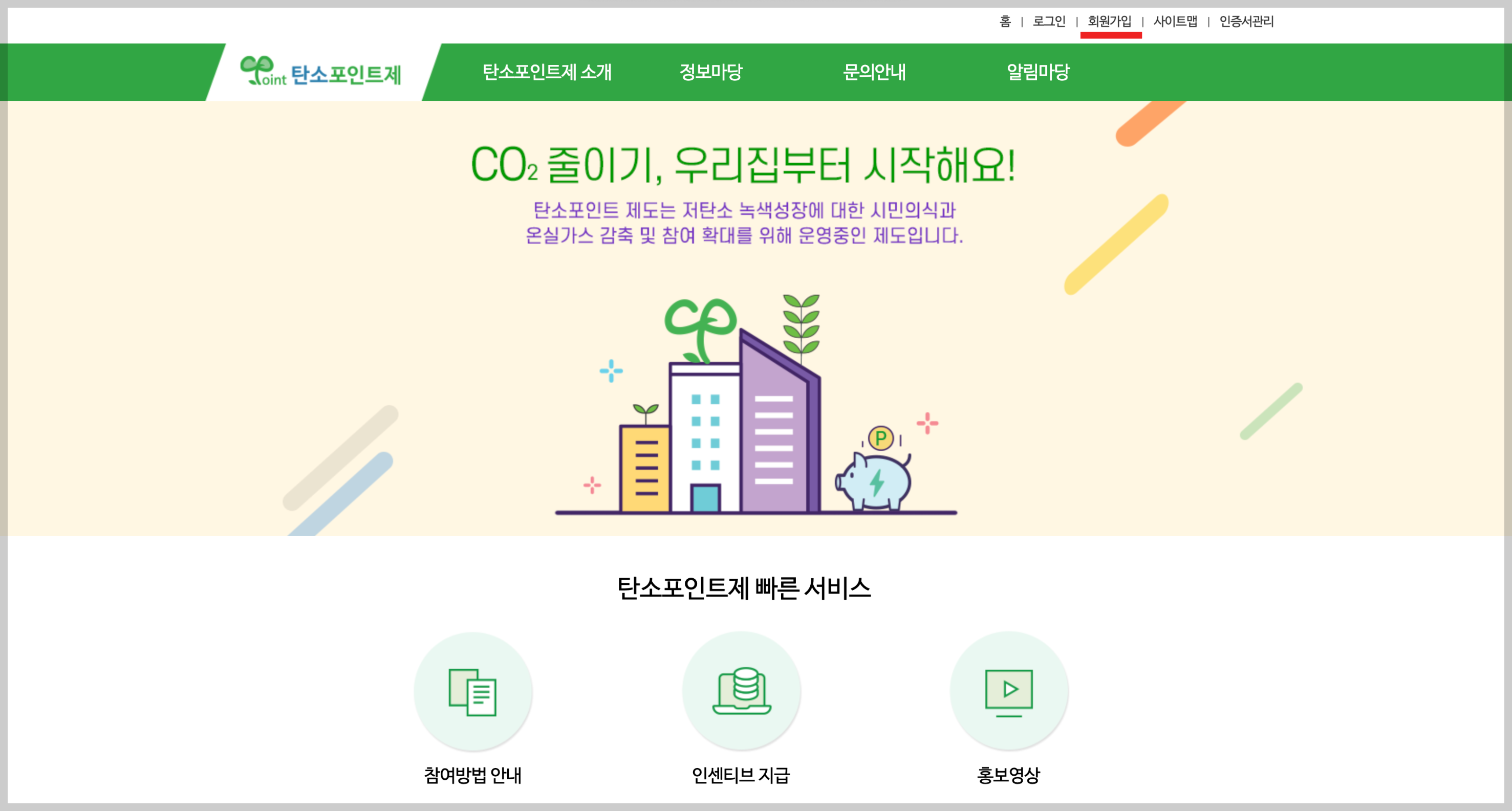 위에 링크 걸어놓은 탄소포인트제 홈페이지에 들어가시면 이런 창이 뜰 거예요