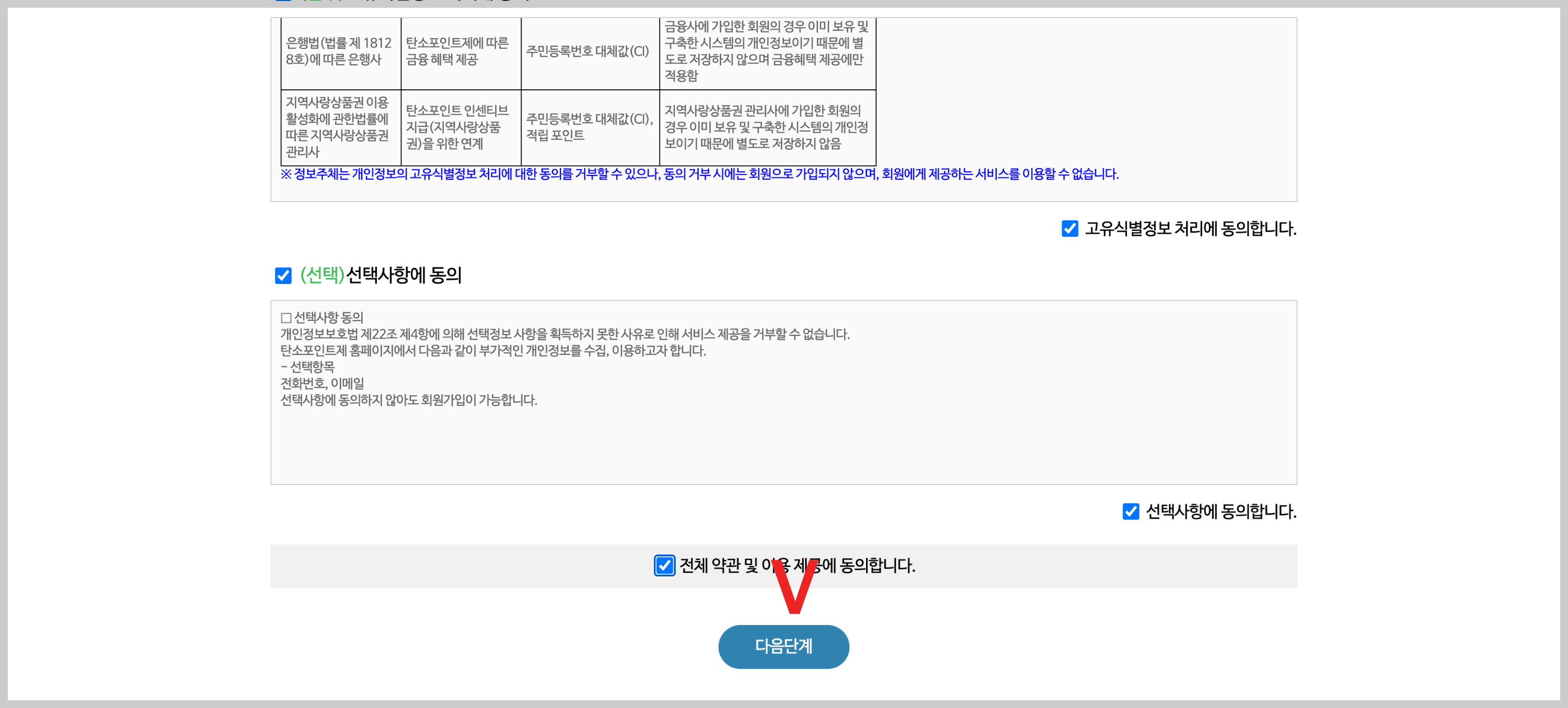 2. 약관동의 / 맨 마지막 사항만 빼고 필수예요 마지막 부분은 선택 안 해도 가입이 가능해요 저는 모두 선택