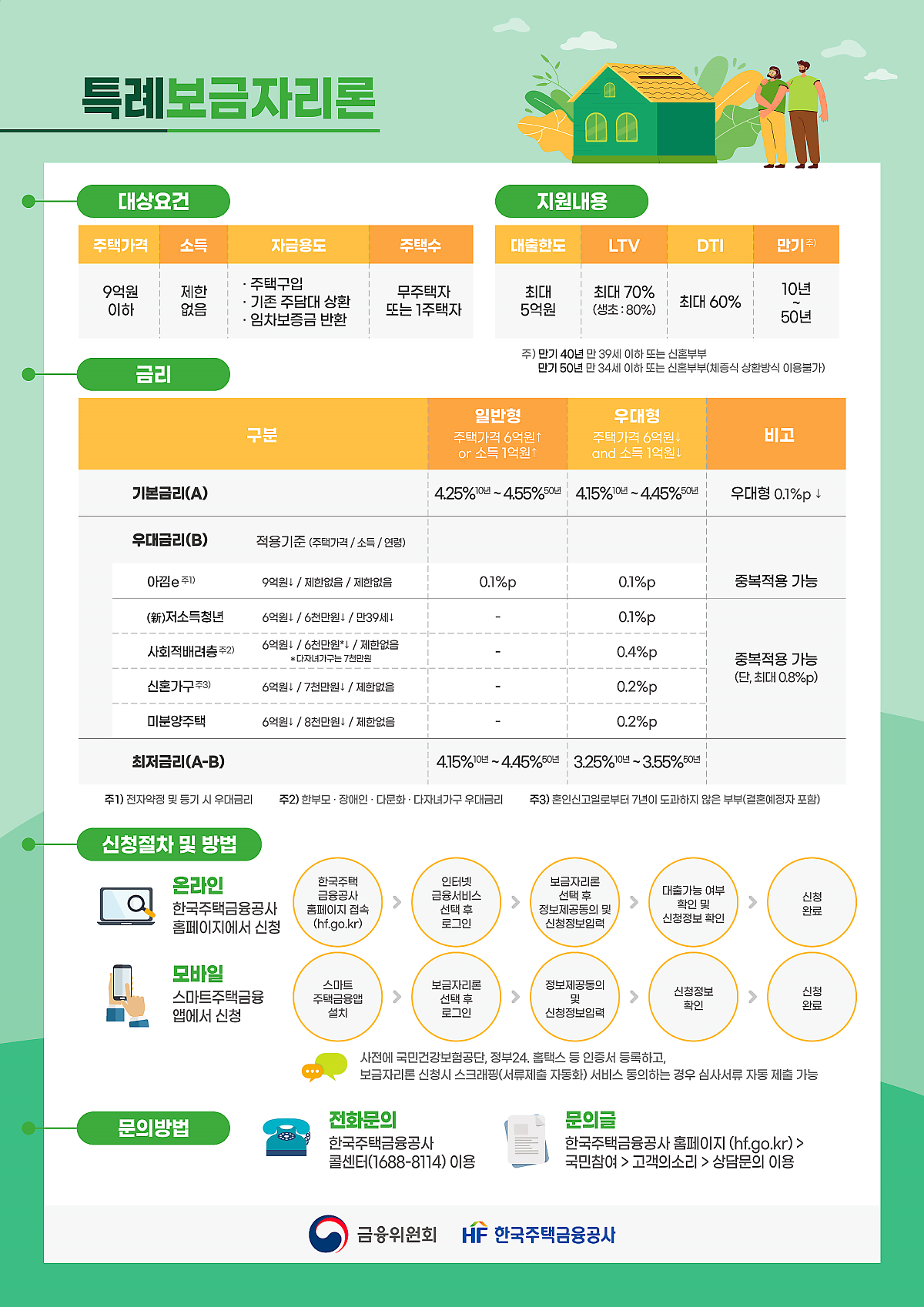 2. 신혼가구, 저소득청년, 미분양주택 입주자, 사회적 배려층인 경우 우대금리 조건(주택가격, 소득 등) 충족하면 최대 0.8% p 금리우대가 추가 적용