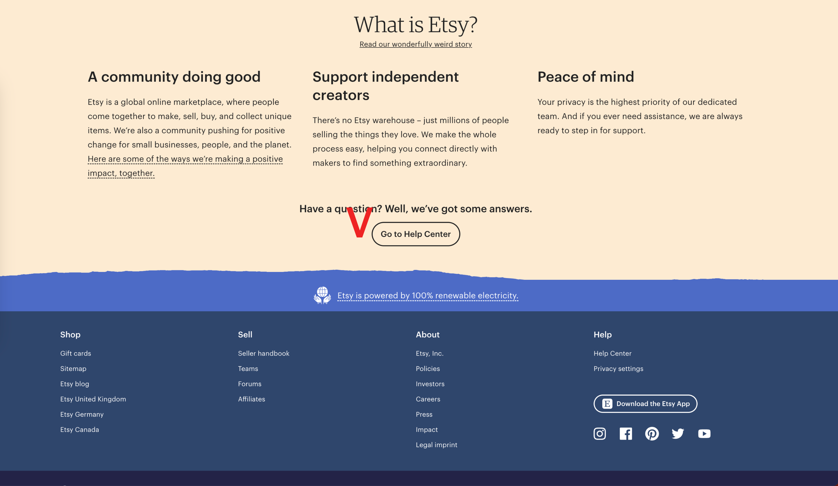 엣시 홈페이지 하단에 'go to the Center' 클릭
