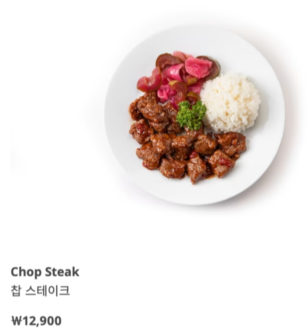 소금구이 닭갈비 스테이크와 찹스테이크, 김치볶음밥을 주문했습니다 소금구이 닭갈비스테이크는 맵지않고 간이 잘 되어있어서 아이들도 잘 먹겠더라고요 살코기가 부들부들해요 찹 스테이크도 뻑뻑하지 않고 촉촉한 소고기에 케첩, 스테이크소스가 어우러진 맛이에요 한국에서 잘해 먹는 요리가 아니라서 기분전환 맛 같은 느낌. 김치볶음밥은 무난한 약간 매운맛으로 김치볶음밥을 좋아하는 아이가 있어서 늘 주문해서 먹는 편이예요