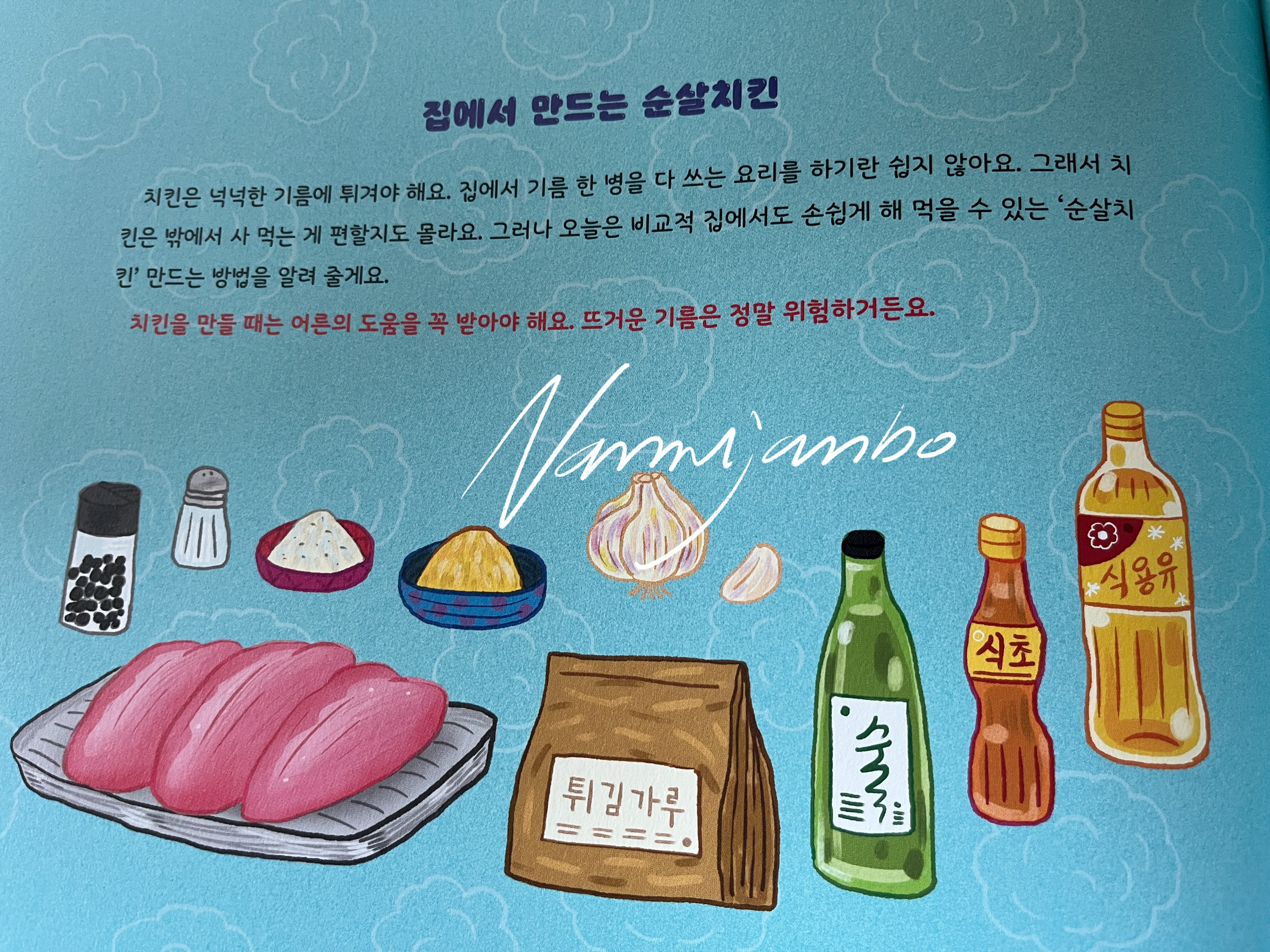 마지막 부분에는 아이와 함께 집에서 만드는 순살치킨, 양념소스 도 있어서 요리에 관심 있는 아이와 함께 만드시면 좋을 거 같아요 저는 패스했지만요 -