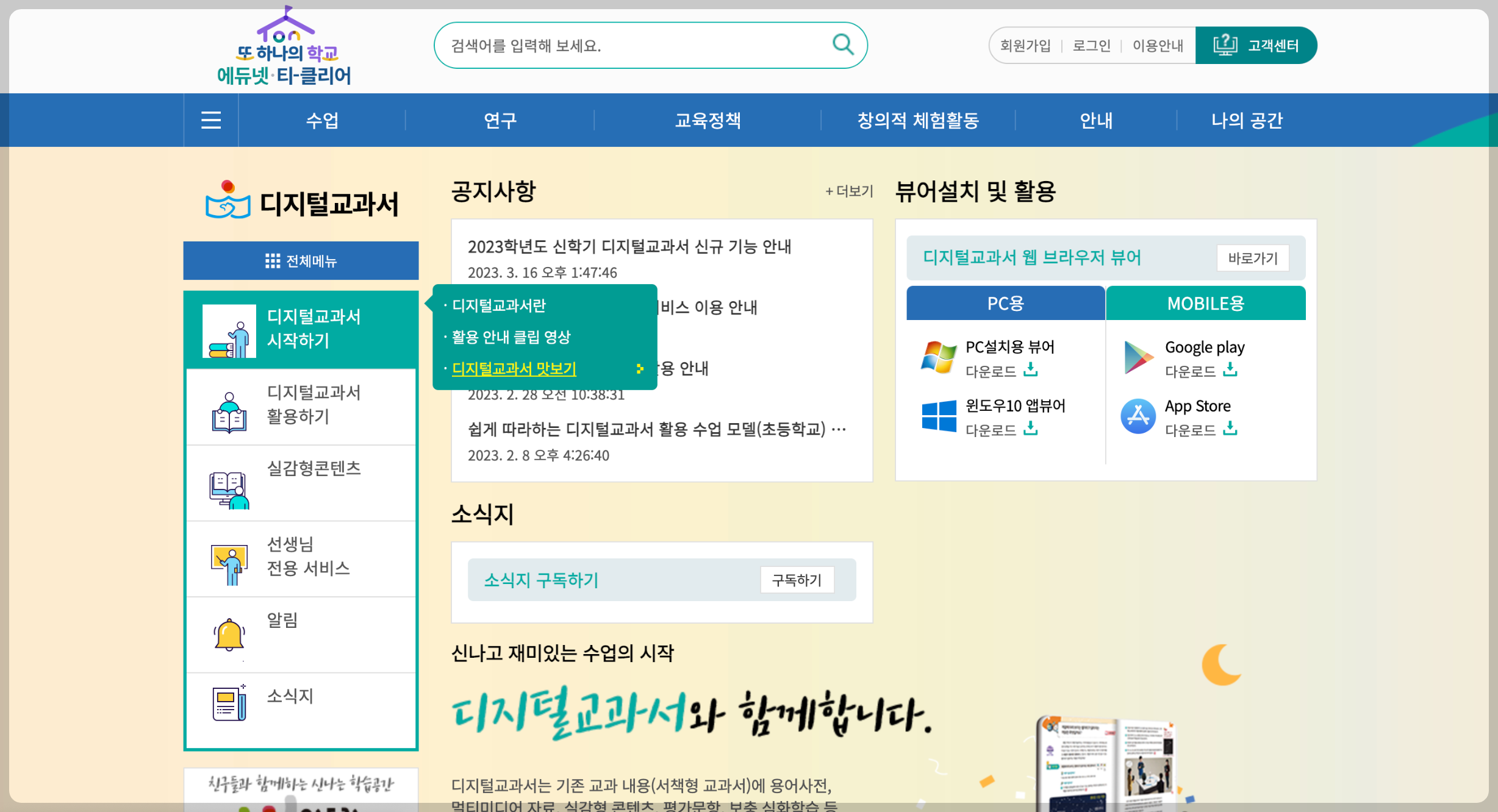 e학습터와 보충하면서 사용하면 좋을 사이트 디지털 교과서