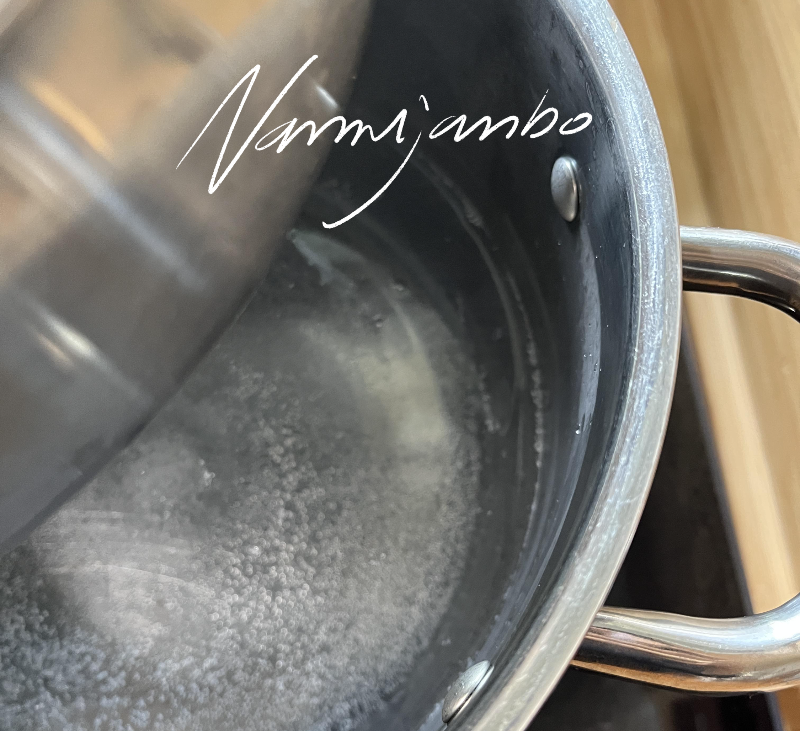 2. 물을 센 불에서 끓여주세요 (저는 소금 1-2 스푼 넣어줍니다 소금을 넣으면 간이 조금 배어서 먹기 좋더라고요 그리고 기호에 따라 후추, 생강가루가 있으시면 같이 넣고 끓여줘도 좋아요 저는 그냥 패스)