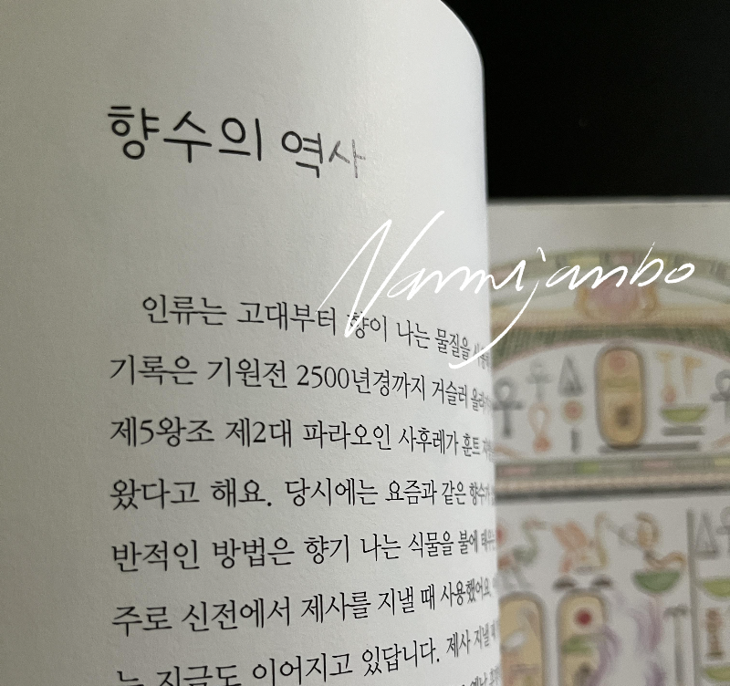 그림에서도 향기가 나는 것 같은 그림이 가득한 예쁜 그림책이에요 다른 인문그림책에서처럼 냄새의 역사, 에피소드들이 가득해요 저는 중세시대에 목욕하면 죽는 줄 알았다는 글을 읽고 엄청 집중해서 읽었어요 아이도 궁금한 부분을 찾아서 먼저 읽기도 하더라고요 인문그림책은 소금, 후추 등 다양한 주제로 다뤄지는데요 다 너무 내용이 좋아요