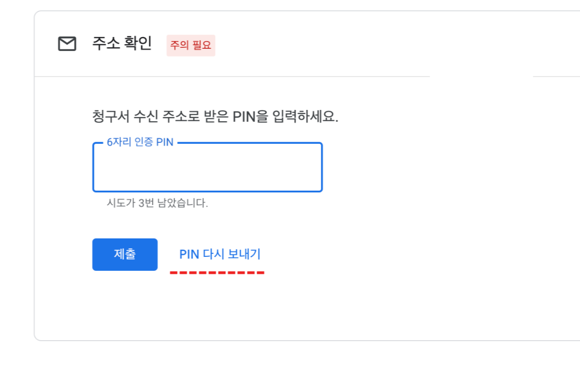 신청하고 3개월 정도 지났는데 도착하지 않아서 다시 구글 에드센스 홈페이지에 들어가 봤어요 다시 자세히 살펴보니 세부주소가 입력되어 있지 않더라고요 그래서 'PIN 다시 보내기' 클릭 - 주소를 수정하고 3-4주 지나서 받았어요 주소가 정확하면 최대 4주인 거 같더라고요