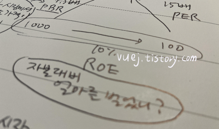 내가 가지고 있는 자본금이 1000만 원 있다고 가정해 보자 내가 매월 100만 원을 번다 그러면 지본금에 10%를 번 거다 이것이 ROE다