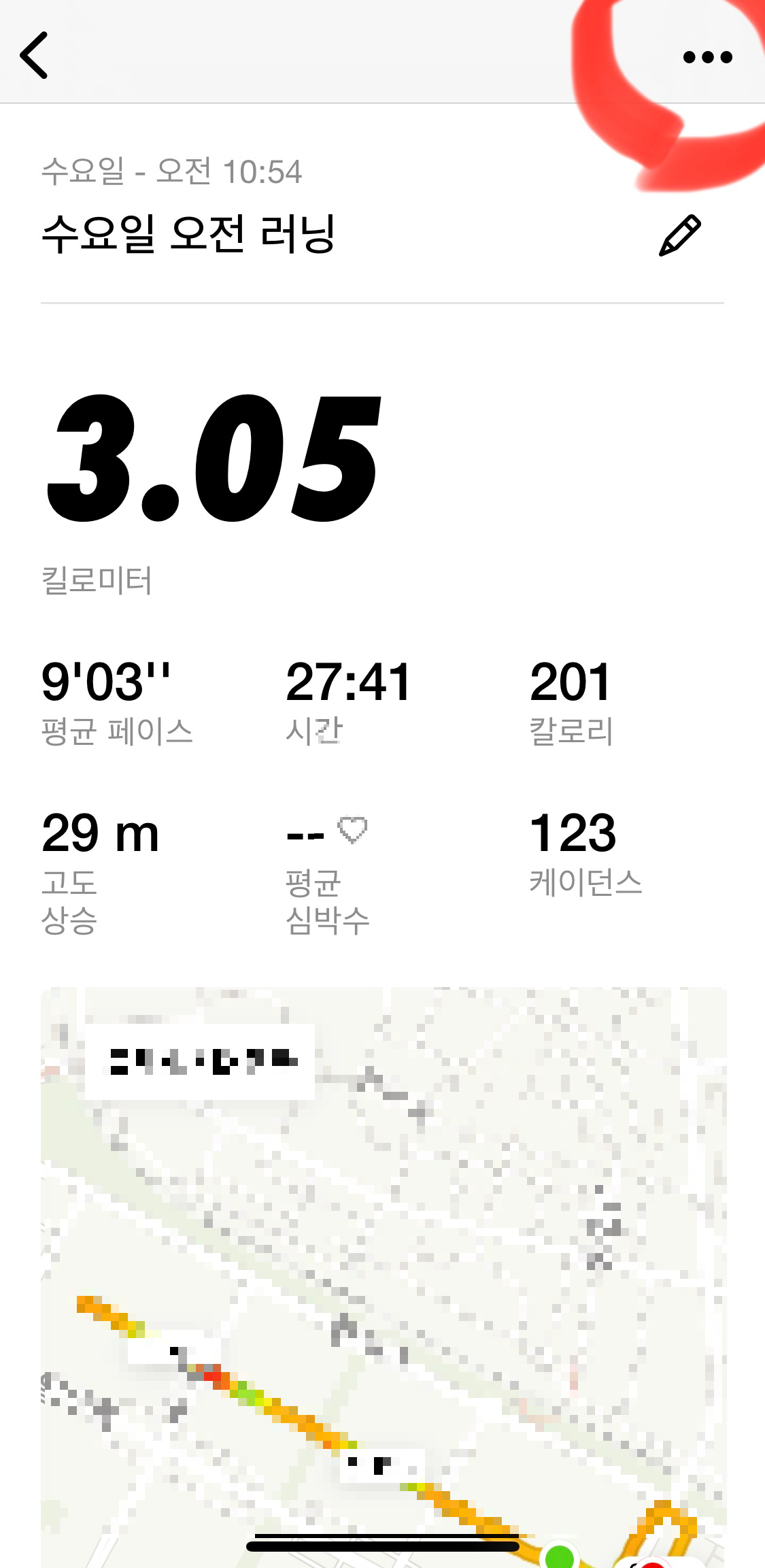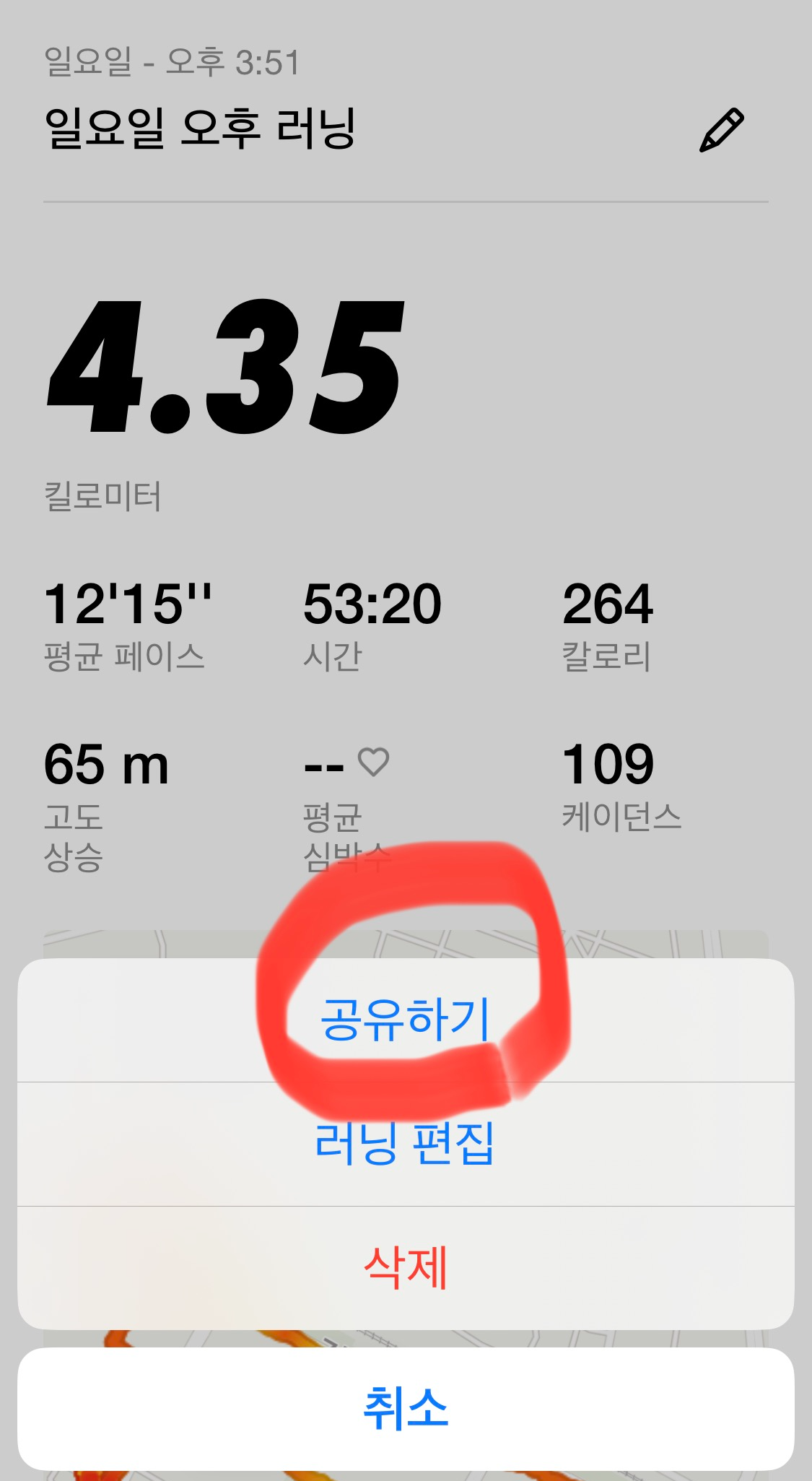 운동하고 난 후 내가 원하는 이미지샷을 만들고 싶으시다면 맨 아래 [활동] 선택하고 이미지샷 만들고 싶은 활동 데이터를 선택해요 그러면 위의 오른쪽과 같은 창이 뜰 거예요 거기서 상단에 있는 [검은 점 세 개] 선택하세요