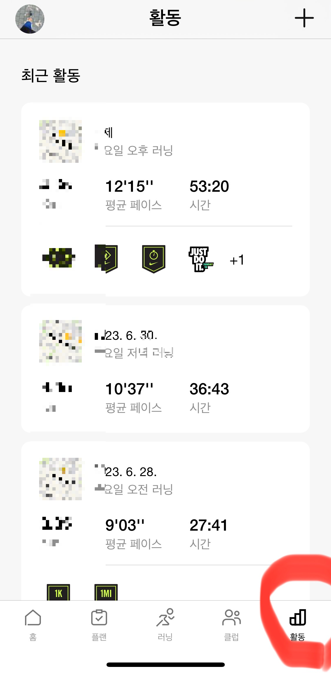 여러 사람들과 함께 하는 운동보다 달리기 같이 혼자 도장 깨기 하는 운동을 좋아하는 저는 나이키런클럽을 사용하고 너무 좋더라고요 내 운동 기록을 편하게 이쁘게 기록 가능하니 운동하고 나서도 나름 뿌듯함을 느끼고요 사용 방법을 모르시는 분들을 위해 남겨봅니다