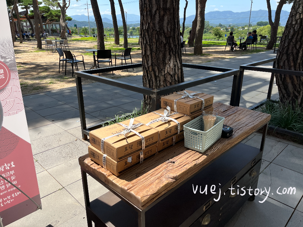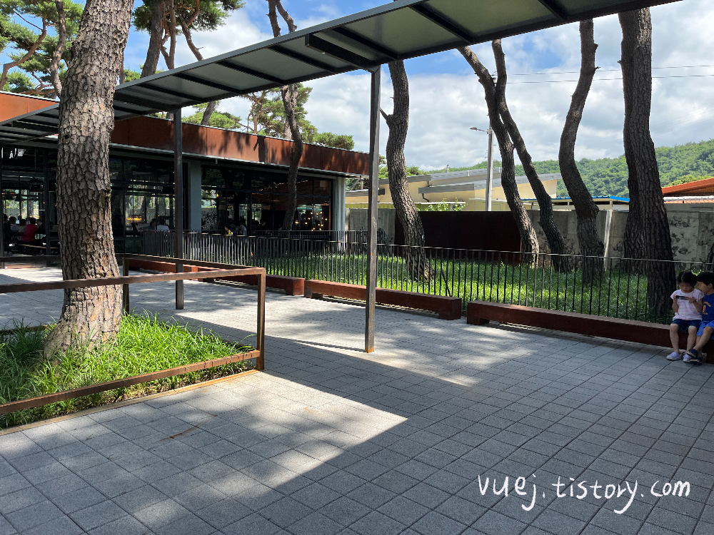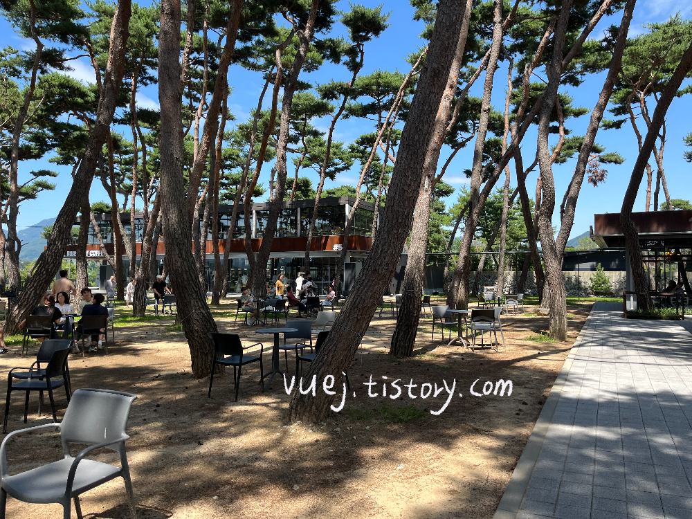 소나무가 엄청 많아서 장소가 참 멋지더라고요 공간도 여러 개로 나눠져 있어 규모가 상당하고 주문 시스템이 잘 되어있어요 사람이 많았고 10개 넘는 메뉴를 주문했는데 10분도 안 걸린 거 같아요