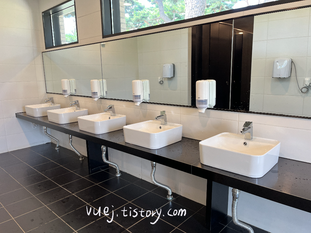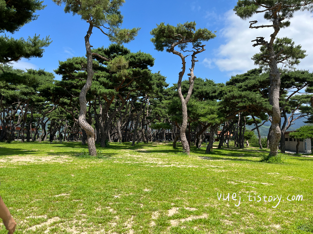 소나무가 우거져 강릉해수욕장 분위기가 나요