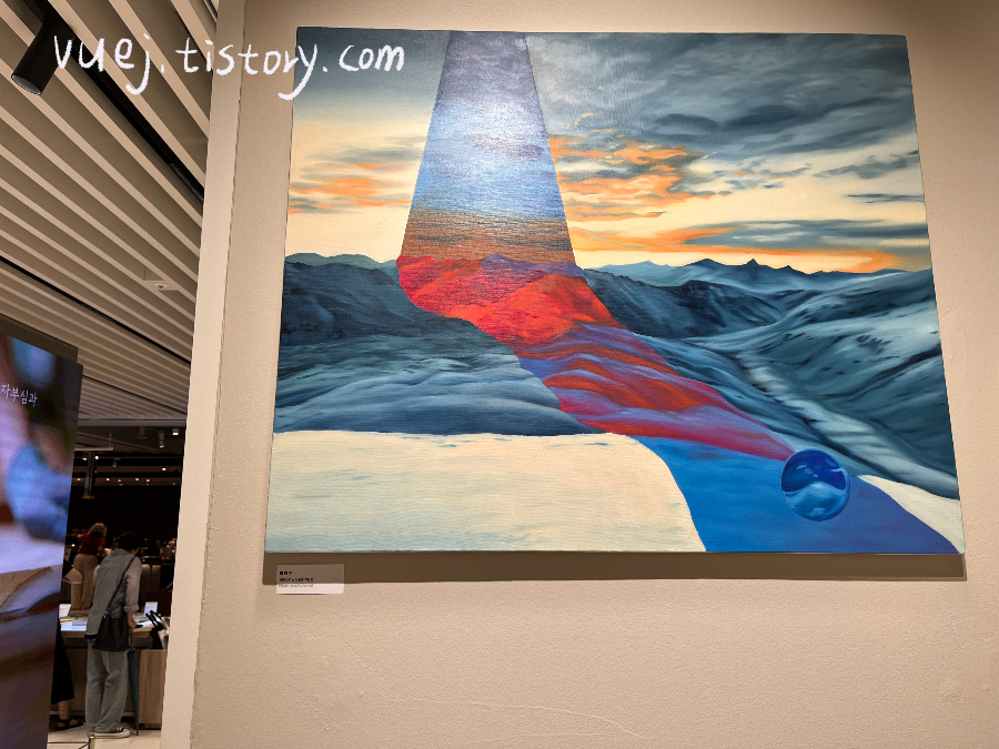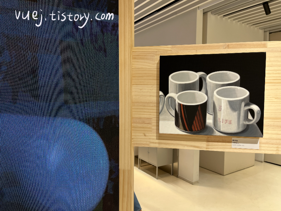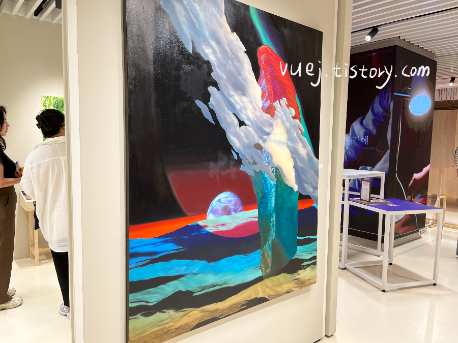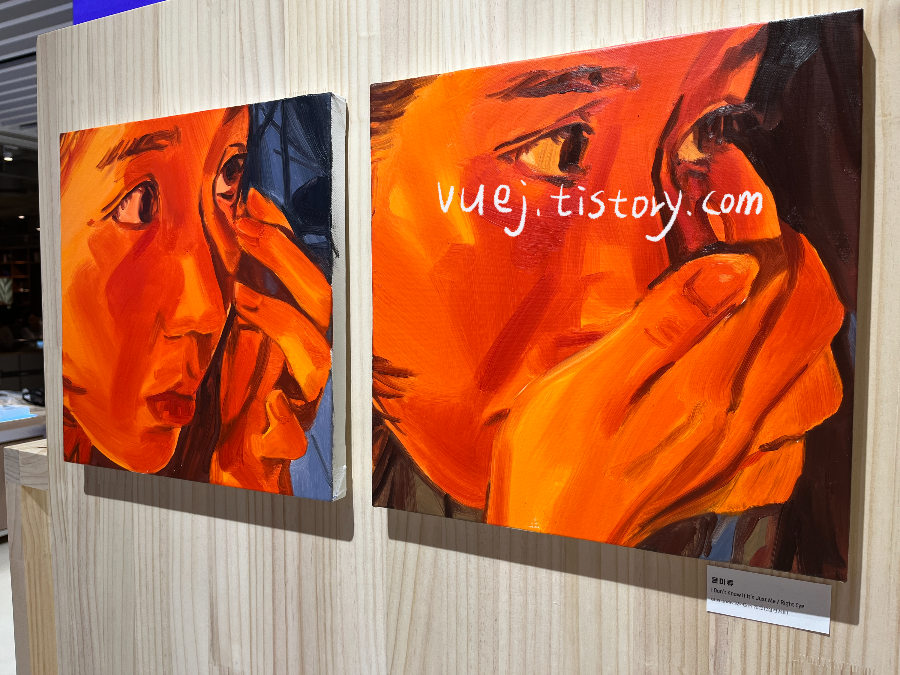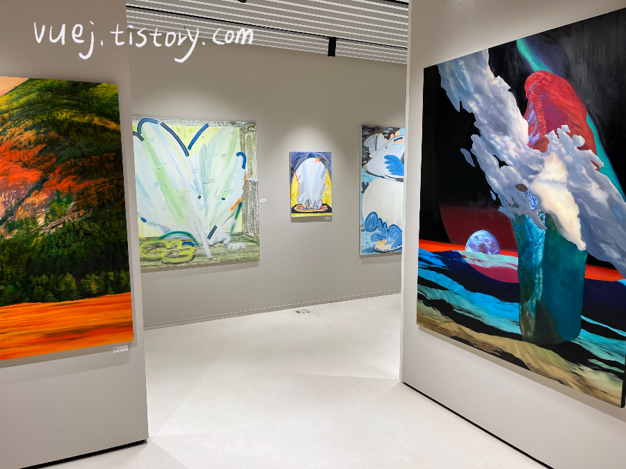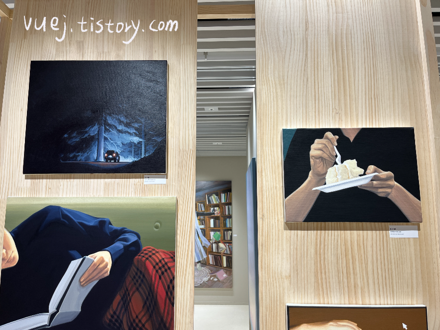 위 파스텔톤의 그림은 아크릴 물간과 유채를 혼합해서 사용한 그림, 그림들이 다 개성 있고 매력도 있어서 전시 끝나기 전에 한번 더 기회가 되면 방문하고 싶더라고요 -