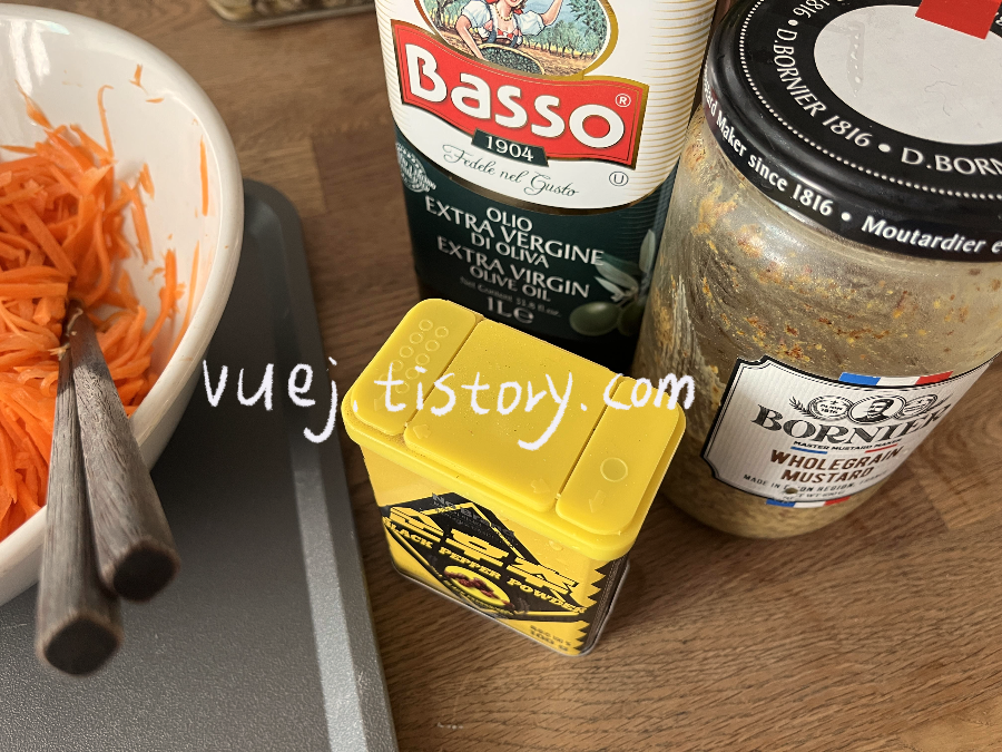 절여지는 동안 소스재료를 잘 섞어 놓아요 절여진 당근에 섞어 놓은 소스 재료를 넣고 양념이 골고루 잘 베개 뒤적뒤적합니다 다 되었어요 용기에 넣고 냉장 보관하면 됩니다 아침에 샐러드 소스 대신 얹어 먹어도 되고 샌드위치로 먹기도 해요 먹고 나면 건강해진 기분이 드는 샐러드예요