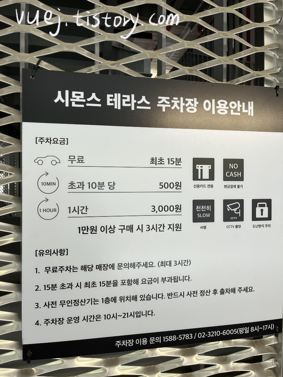 시몬스테라스 안에 카페에서 1만 원 정도 사용하면 주차장 3시간 이용할 수 있어요. 식사하고 들려서 좀 걷다가 커피 마시고 오기 좋은 코스인 거 같아요.