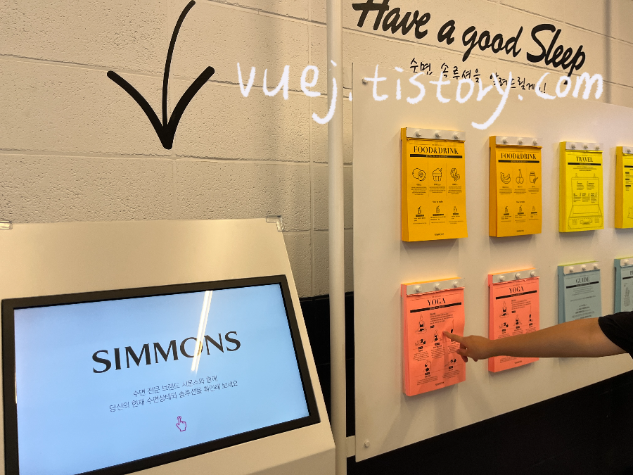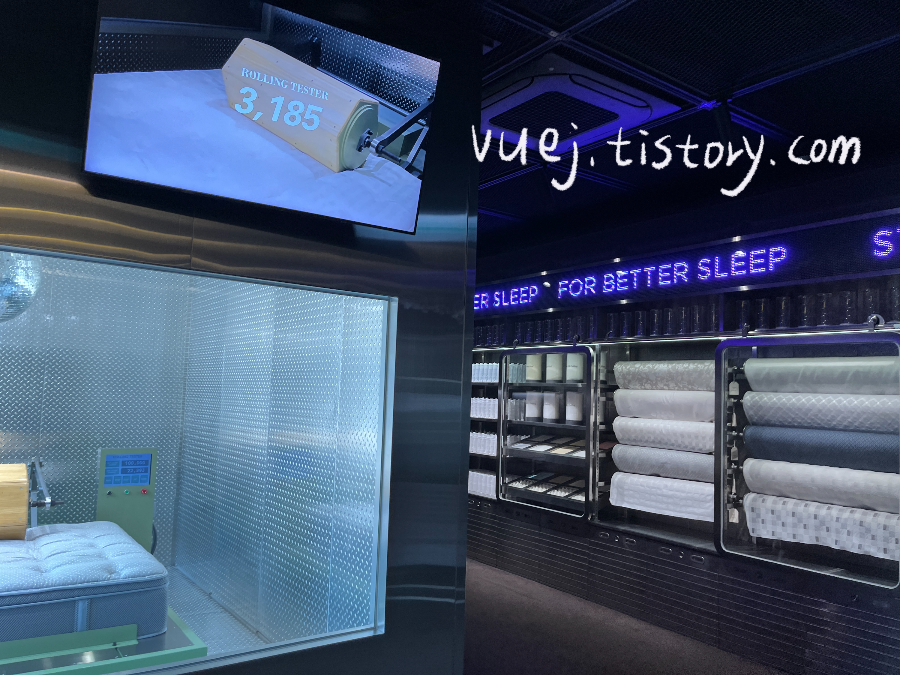 입구에 자신에게 맞는 매트리스를 추천해 주는 나름 재매 있는 서비스 프로그램이 있는데 온 가족이 해봤어요 나에게 맞는 정보가 영수증처럼 쭉 나오는데 재미로 한번 해보세요. 아이들이 좋아해요 ㅋ 그리고 매트리스 랩에서는 원하시면 자신에게 맞는 매트리스를 상담받을 수 있어요 아주 친절하게 상담해 주시니까 부담 없이 물어보셔도 좋을 거 같아요