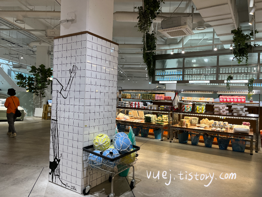 잡화점 빼고 건물들은 서로 이어져 있는 거 같더라고요 어떤 건물은 지하로 이어져 있고 어떤 건물은 2층으로 연결되어 있기 때문에 실내에서 계속 머물 수 있는 구조예요 다만 처음 가게 되면 잘 모르니까 섹션마다 있는 직원분들에게 물어보면 돼요 "실내로 옆동으로 가려면 어떻게 해야 하나요?" 정도로 물으시면 좋죠