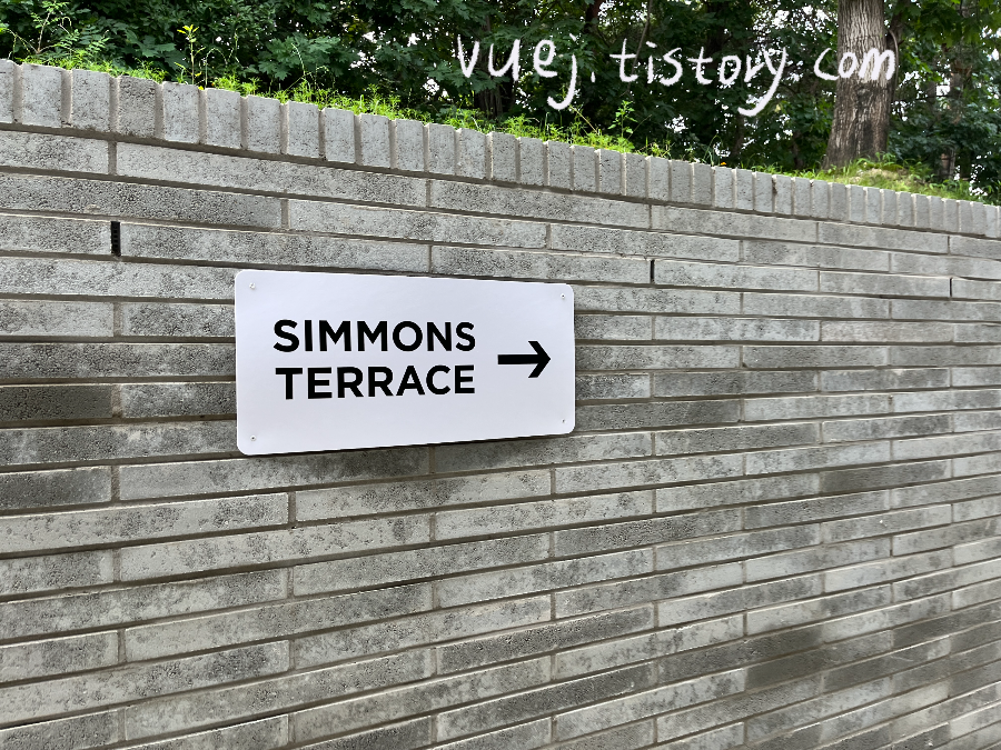 정말 심플하고 견고한 좋은 이미지를 주는 시몬스 로고와 건물의 조화