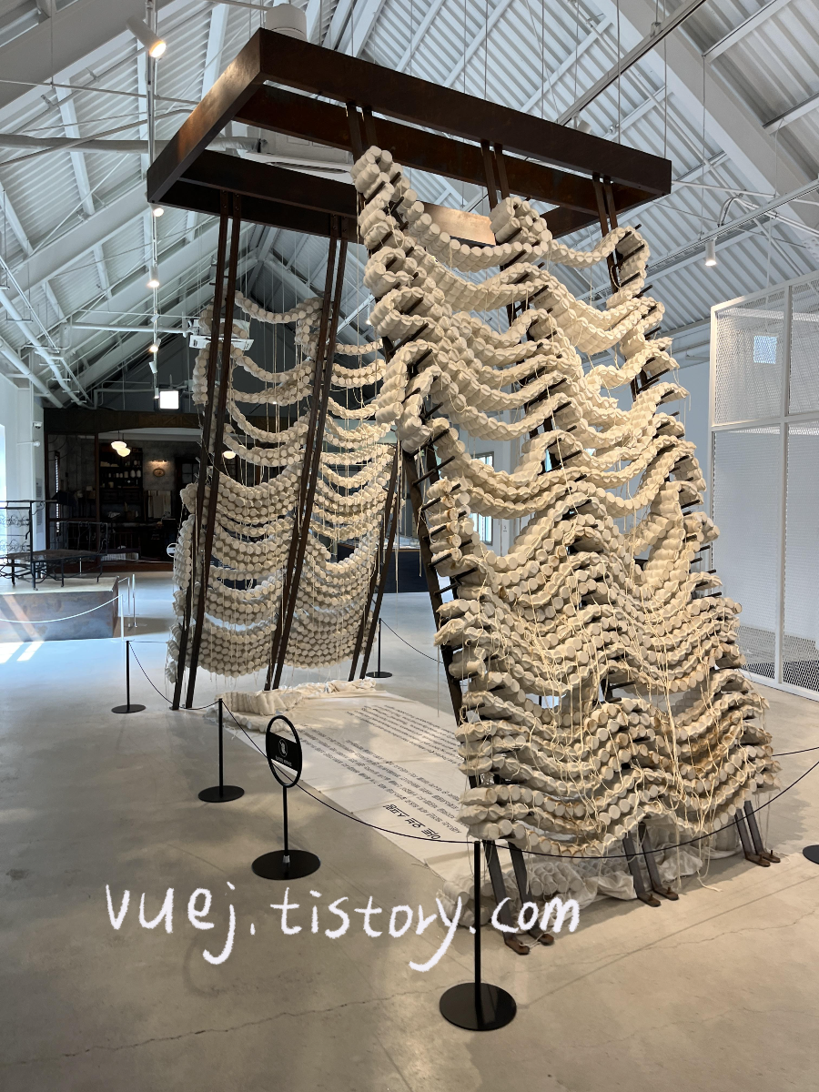 시몬스 박물관 같은 곳인데요 매트리스 포켓스프링으로 설치미술 한 것이 시각적을 눈에 확 들어오더라고요. 이게 뭐지 하고 들어와서 시몬스의 역사를 한번 둘러보게 되는 장소예요.