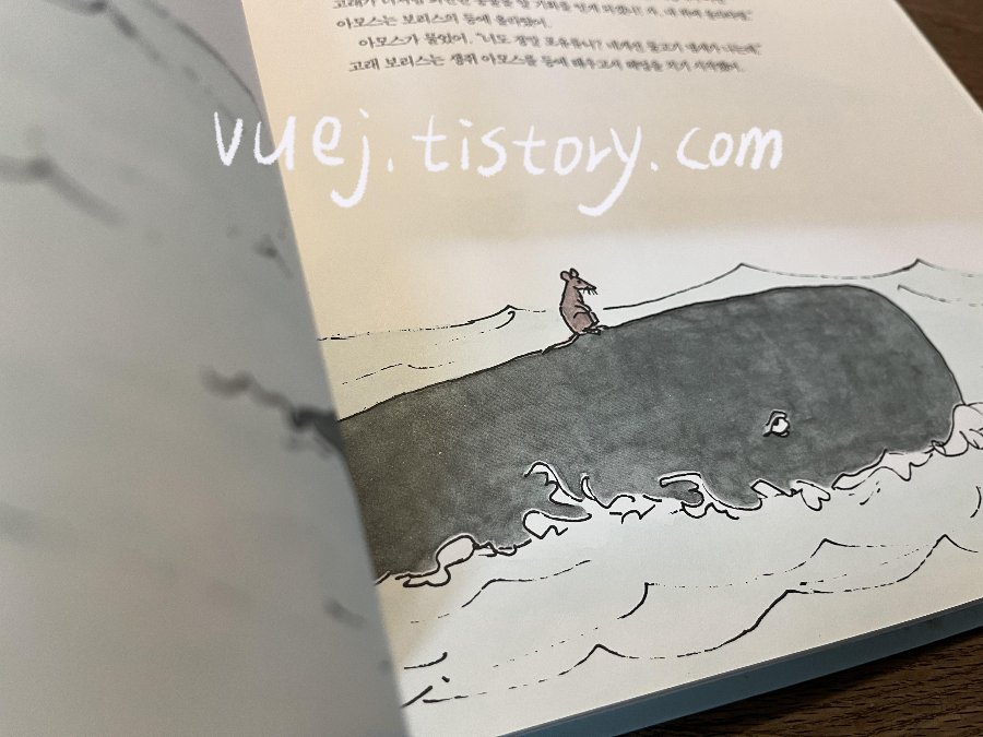 아모스와 보리스의 독특하고 따뜻한 우정을 중심으로 그들이 마주치는 어려움과 결국 이를 극복하는 과정이 그려지는 이 책은 우정과 협력의 중요성, 사회적 차이의 극복, 그리고 생명의 유한함에 대한 생각을 아이들에게 전하고 있어요.