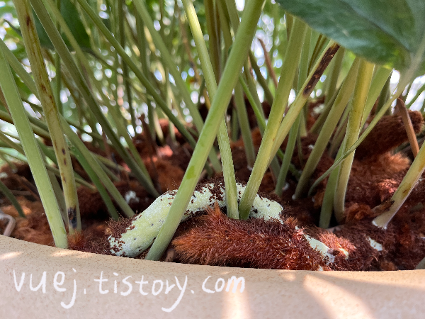 가격이 무려 몇백만 원이나 되더라고요. 뿌리가 깊고 잎 뒷면에 포자*도 엄청 많더라고요. (엄청 신기하고 징그러워요 - -) 아이들과 와 ~ 크다 구경하다가 문득 고사리가 지구에서 제일 오래된 식물이라는 얘기를 주고받다가 진짜 공룡이 살던 시대에 어울릴 만한 식물 같다는 생각이 들더라고요. 거대 고사리 하나로 밀림에 온 듯한 느낌이 나더라고요.