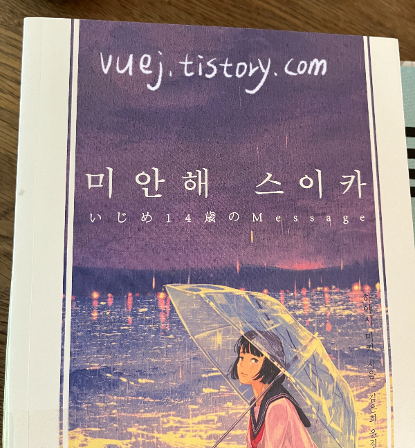 저는 아이가 읽는 책을 다 읽어보진 않아요. 저도 저 나름대로 취향이 있기 때문에 ㅋㅋ 안 읽고 싶으면 솔직히 말하는 편이에요. 그런데 미안해, 스이카는 표지에서 풍기는 느낌이 보고 싶은 마음이 들더라고요.