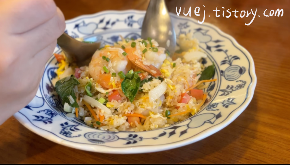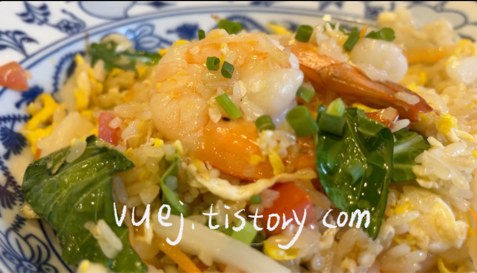 새우와 야채가 듬뿍 들어가 볶음밥인데요 태국 음식이 익숙하지 않은 아이가 있다면 새우계란볶음밥이라고 생각하시고 주문하셔도 좋을 거 같아요.