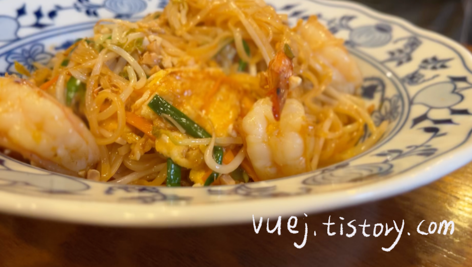 면보다 야채와 새우가 더 많이 들어가 있어서 탄수화물에 민감한 분이 주문하면 좋을 거 같은 볶음면이에요. 역시나 새우 듬뿍!